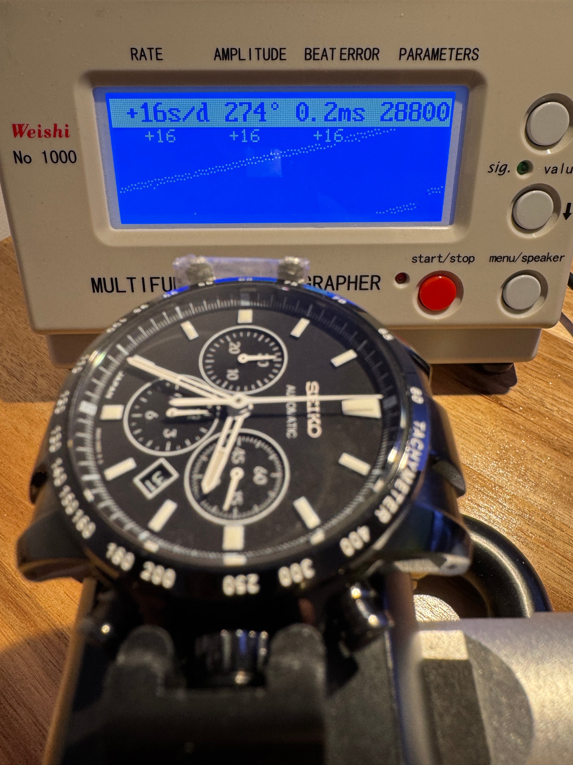 Chronograph starts, stops, and resets correctly.