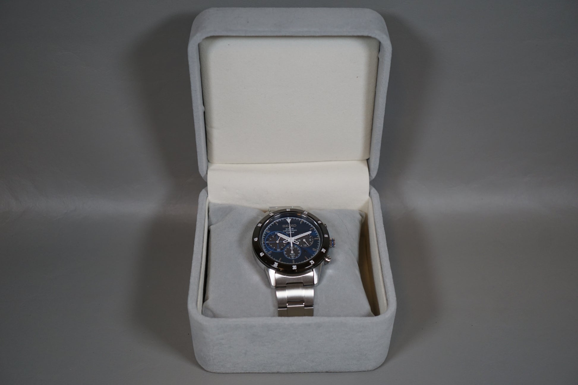For sale is a Seiko Criteria SSC333P1 Blue Dial Chronograph Solar Quartz Watch