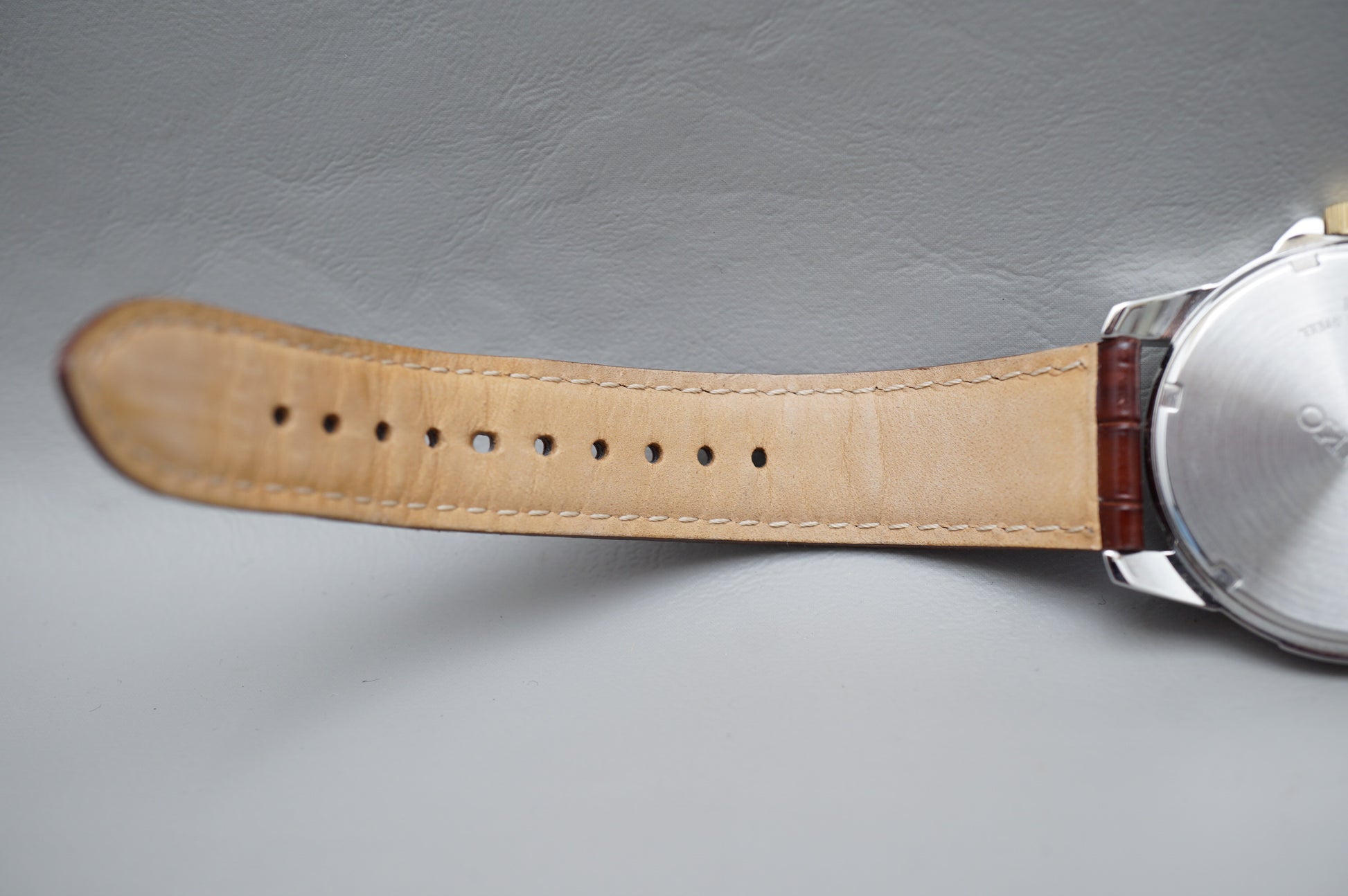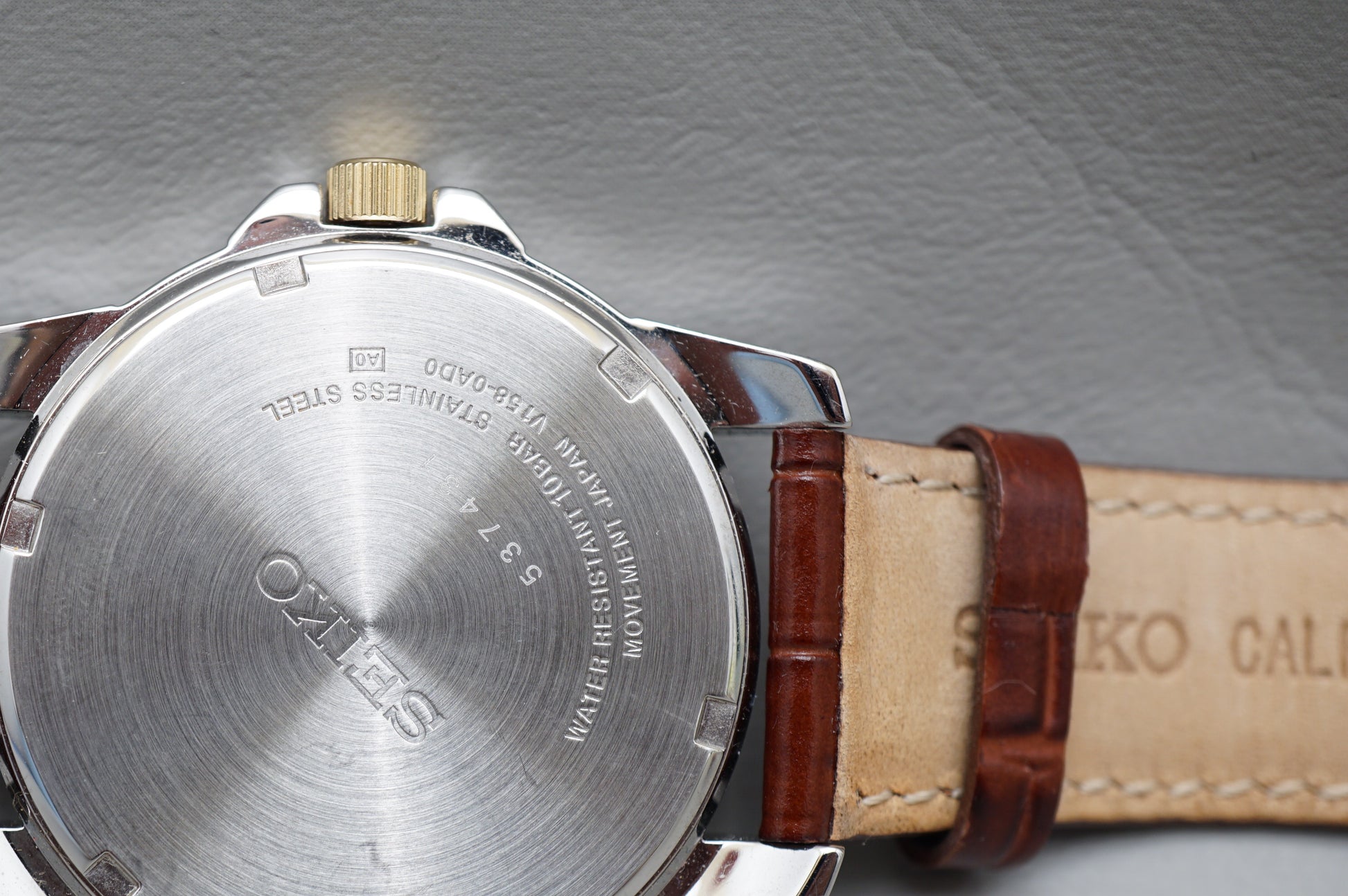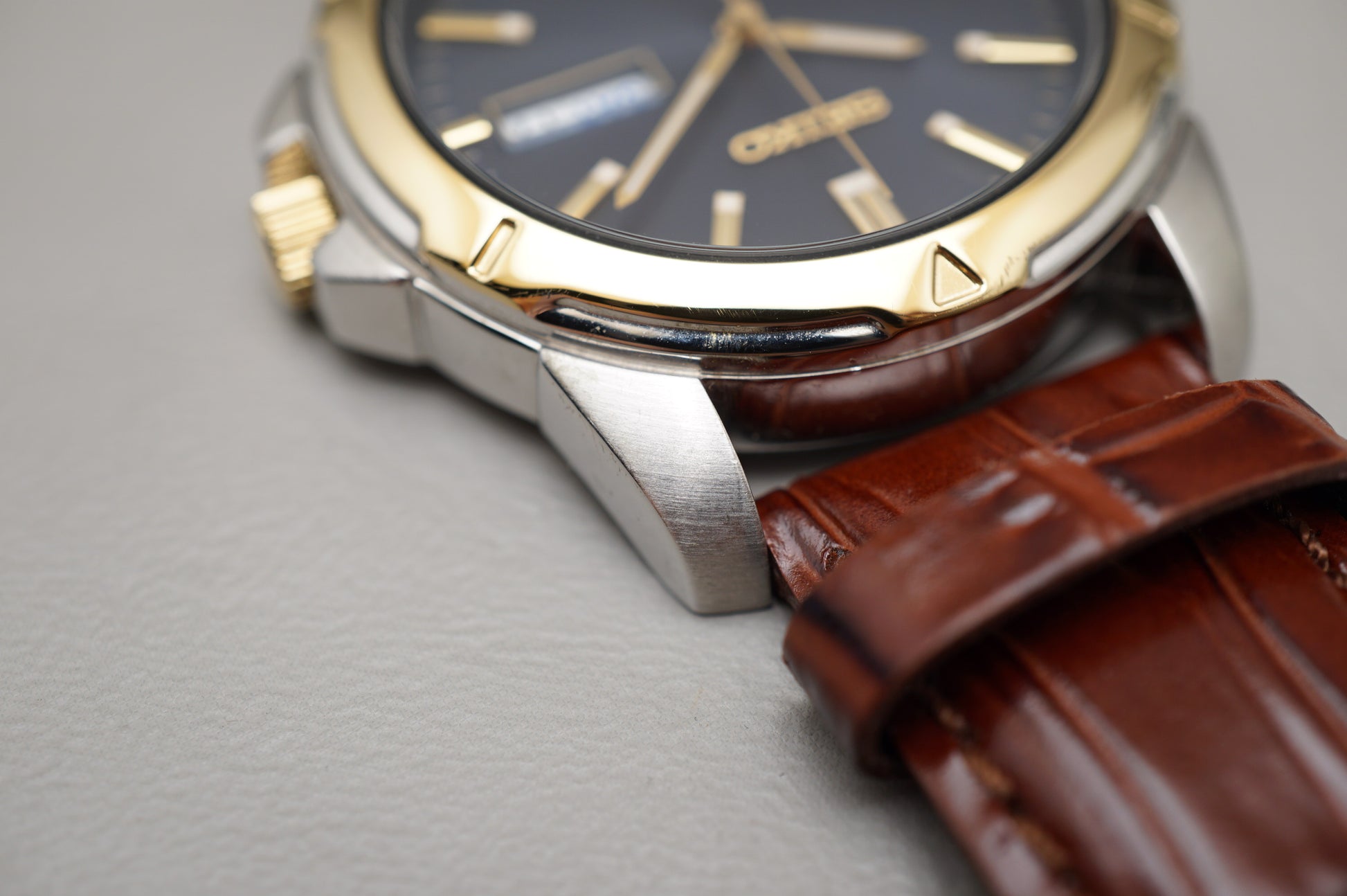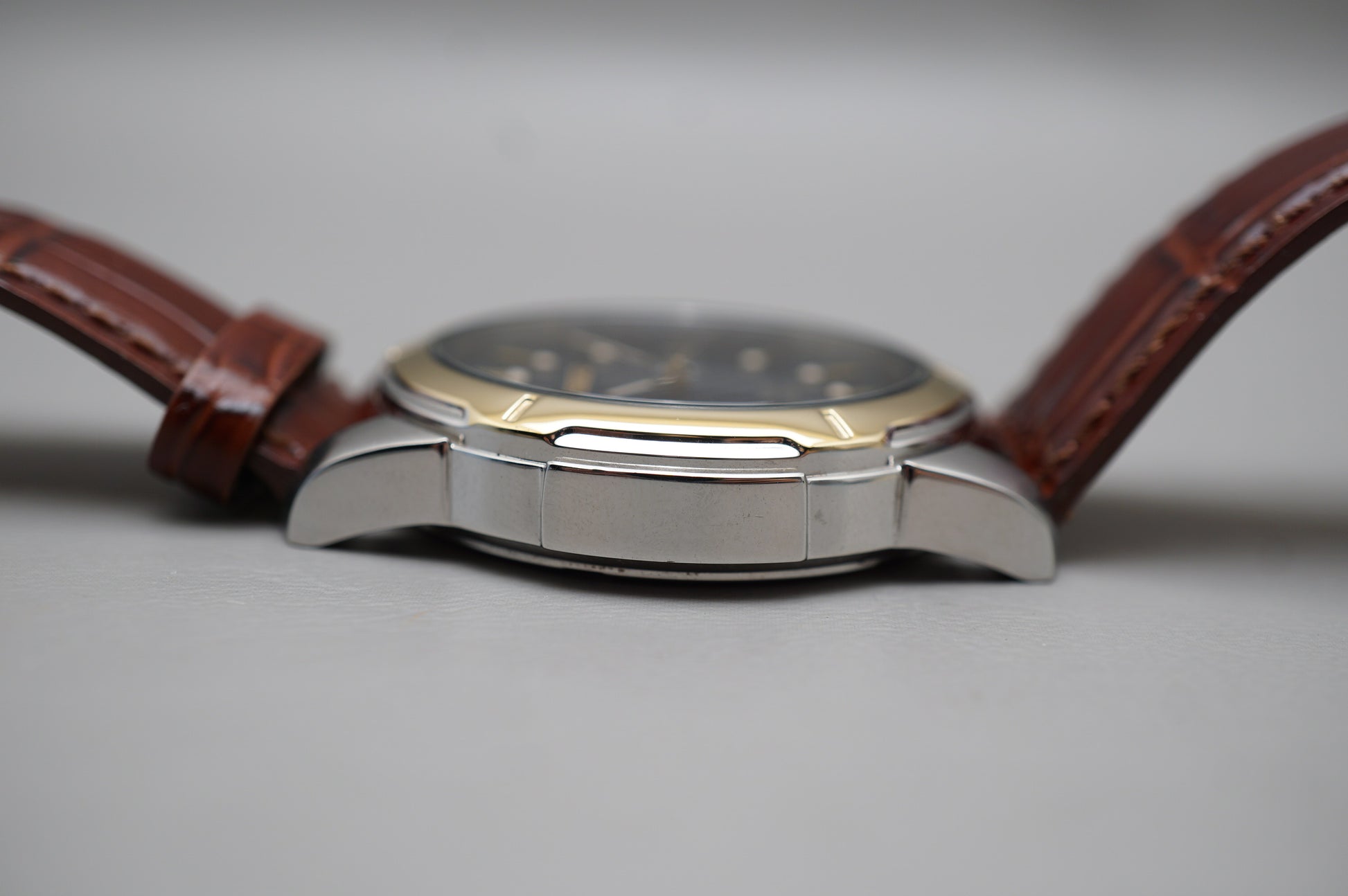 For sale is a Seiko Essentials SNE102 Two Tone Blue Dial Solar 100M Quartz Watch