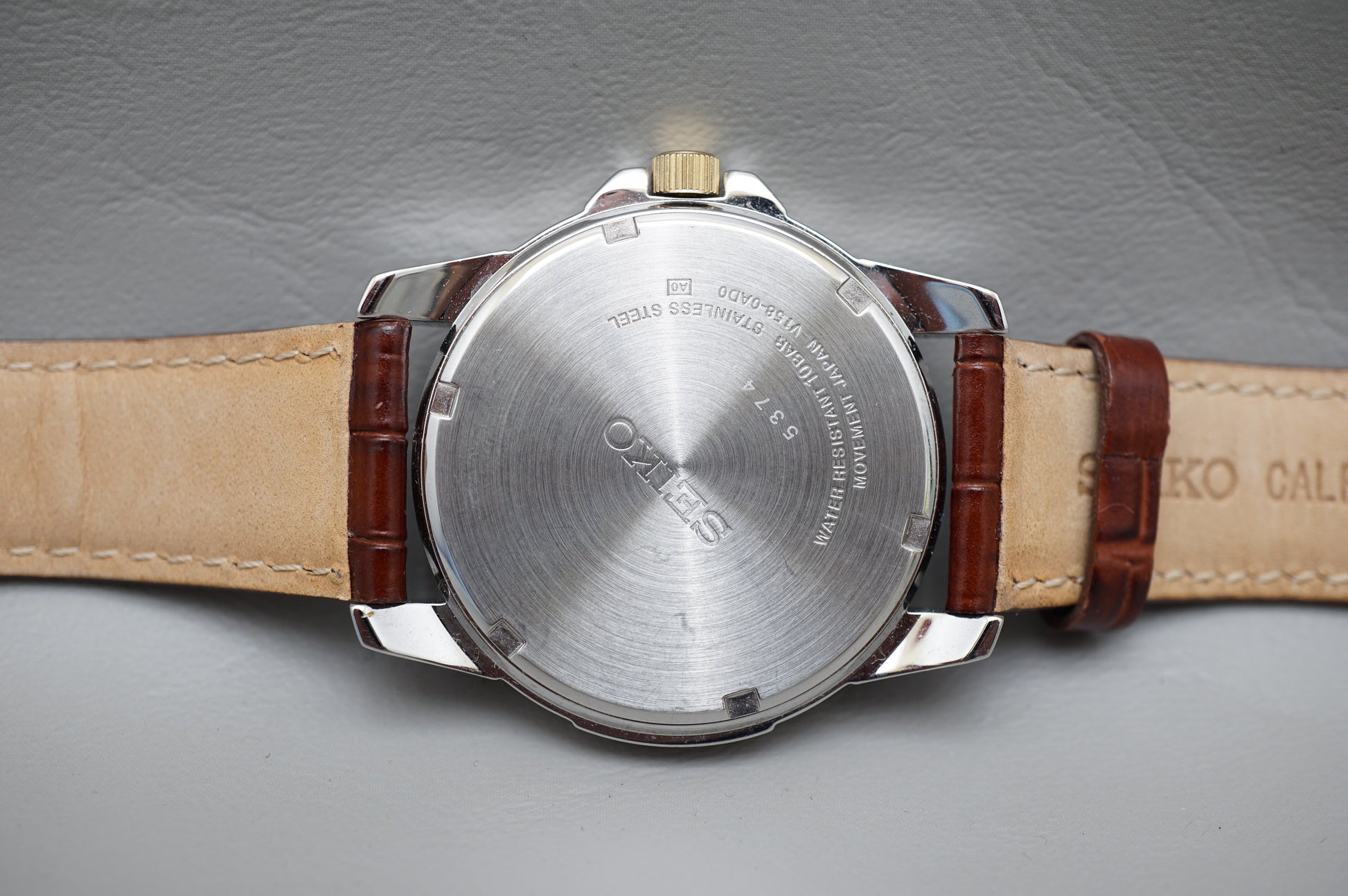 Seiko Essentials SNE102 V158 Two Tone Blue Dial Solar 100M Quartz Watch