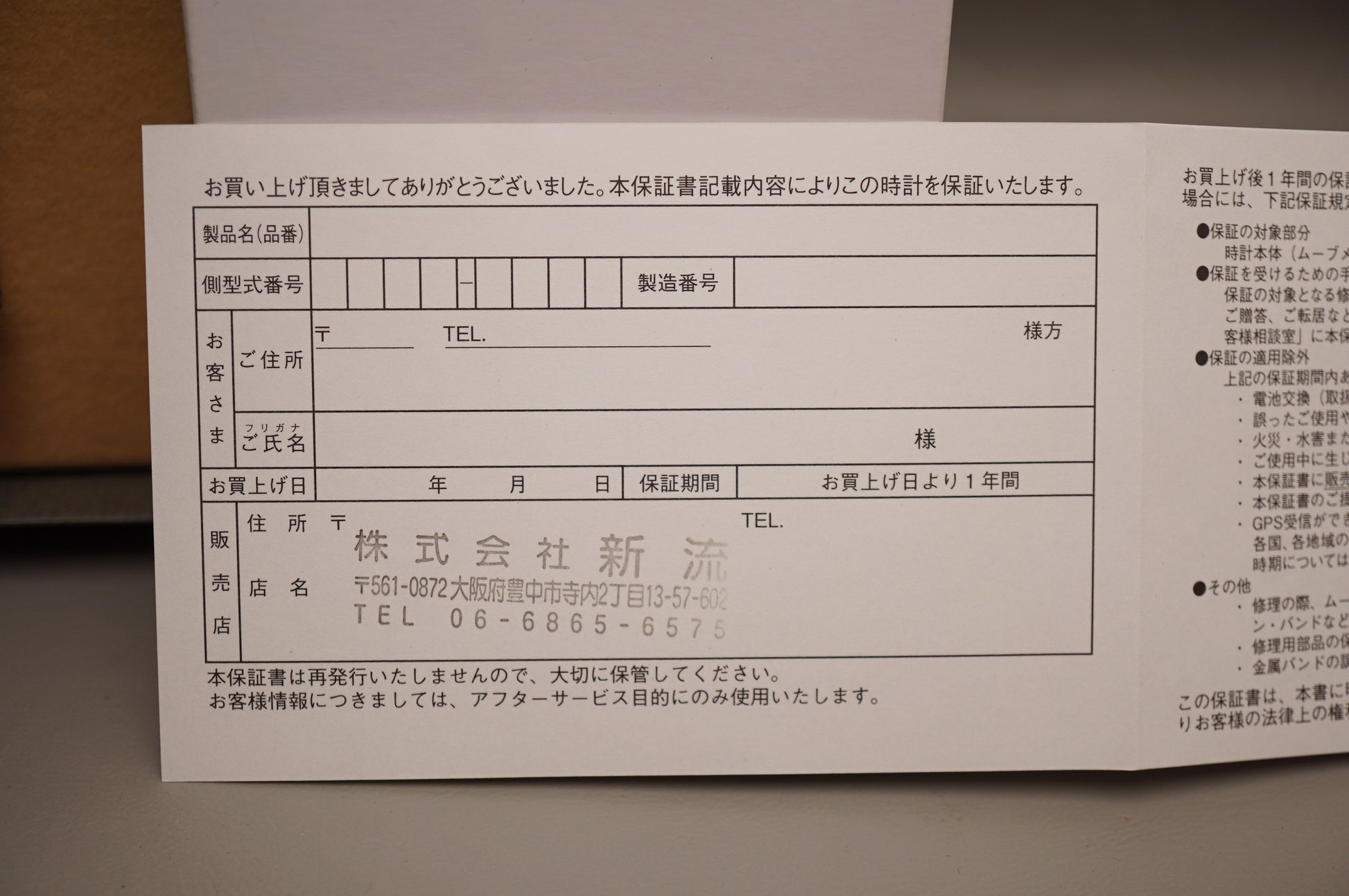 Warranty card: Stamped