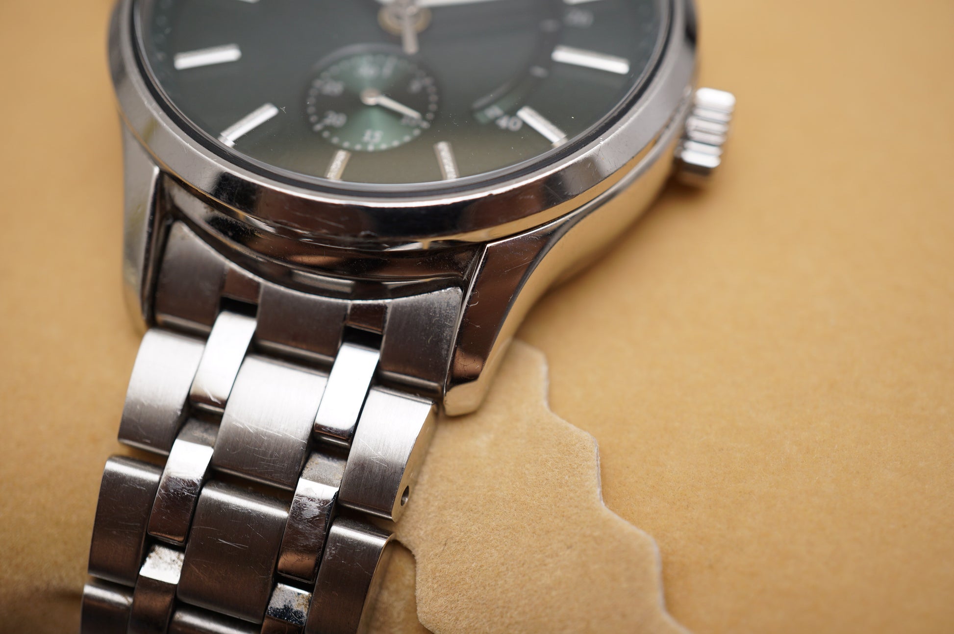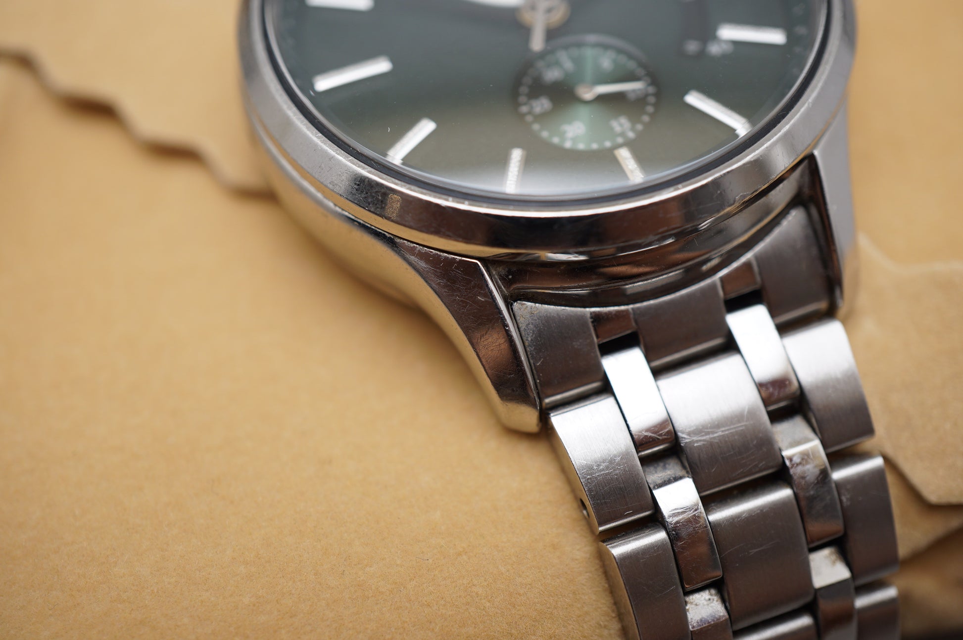Signs of wear throughout case/bracelet, no wear on crystal.
