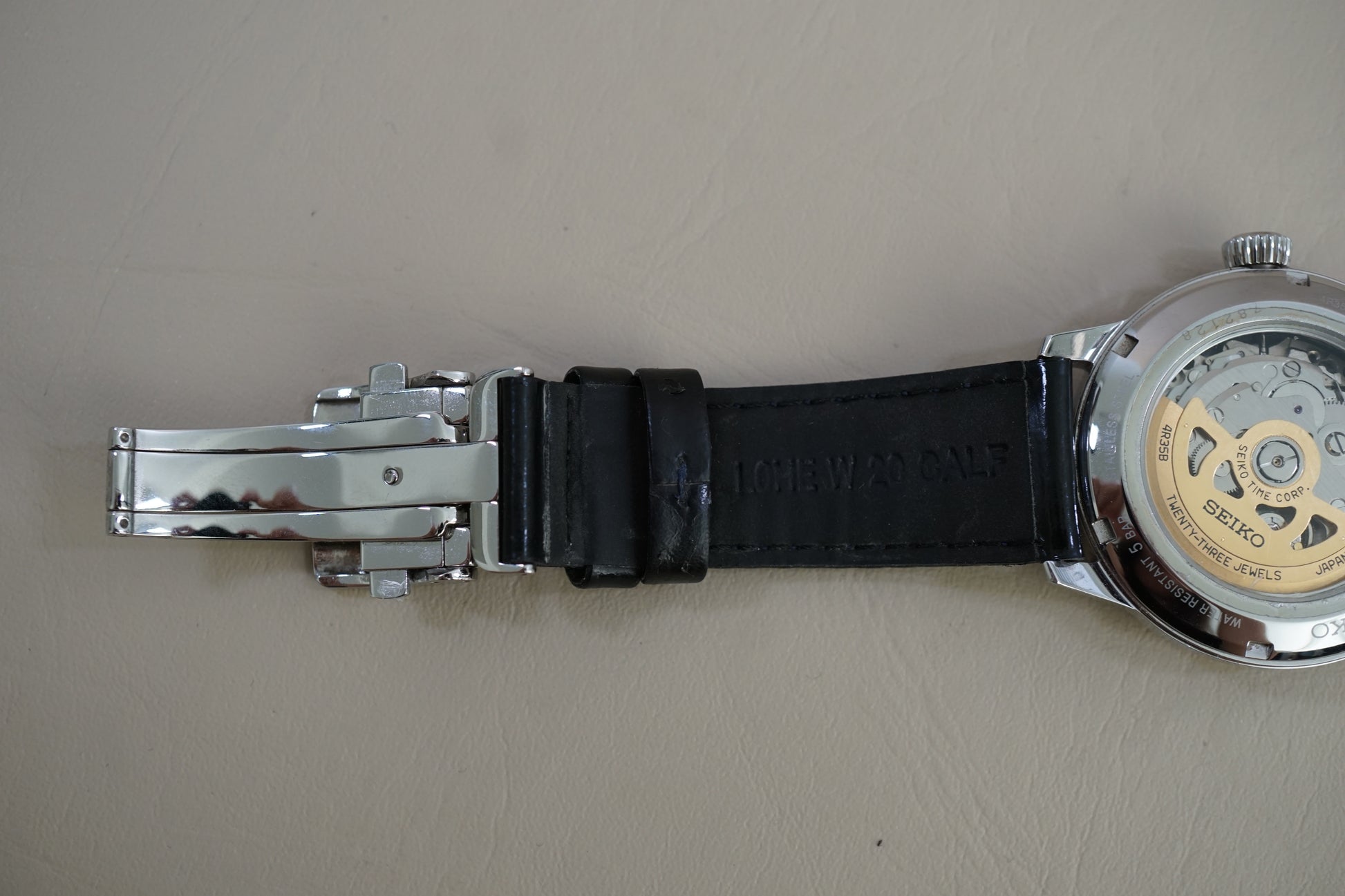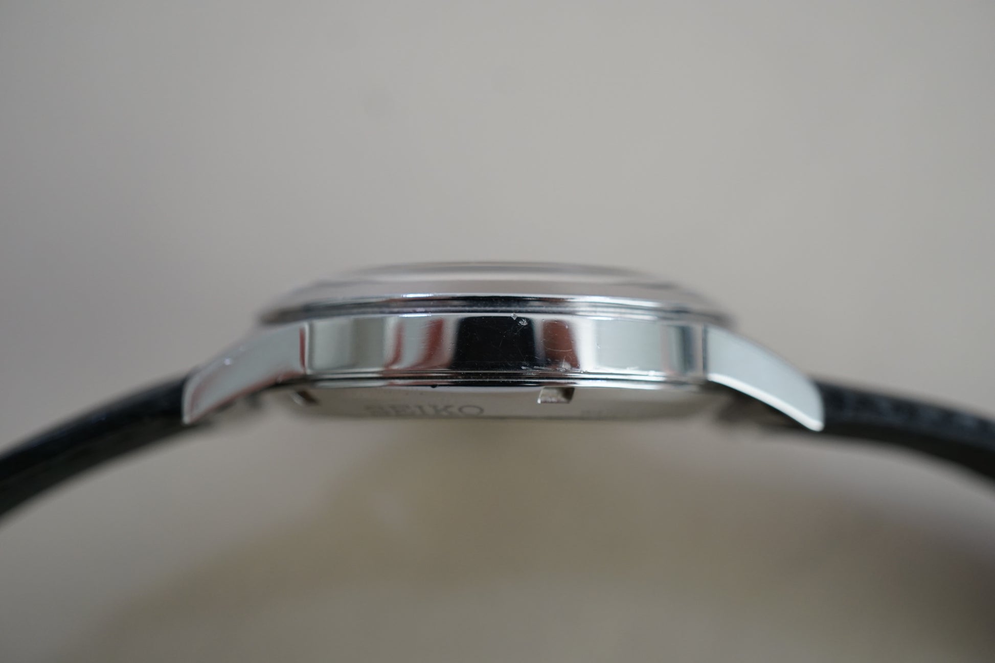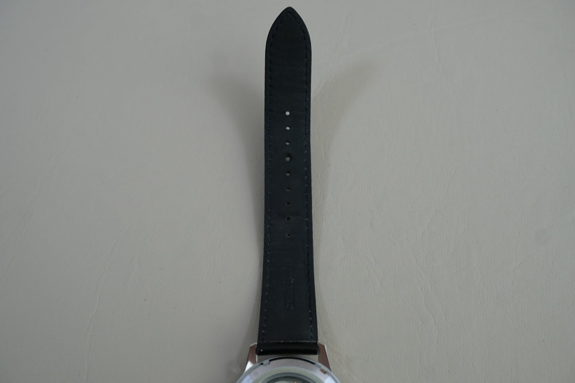 This watch is in used condition and comes as pictured on the original leather band. This piece comes watch only, no accessories are included. Notable wear on the crystal and peeling on the strap as pictured.