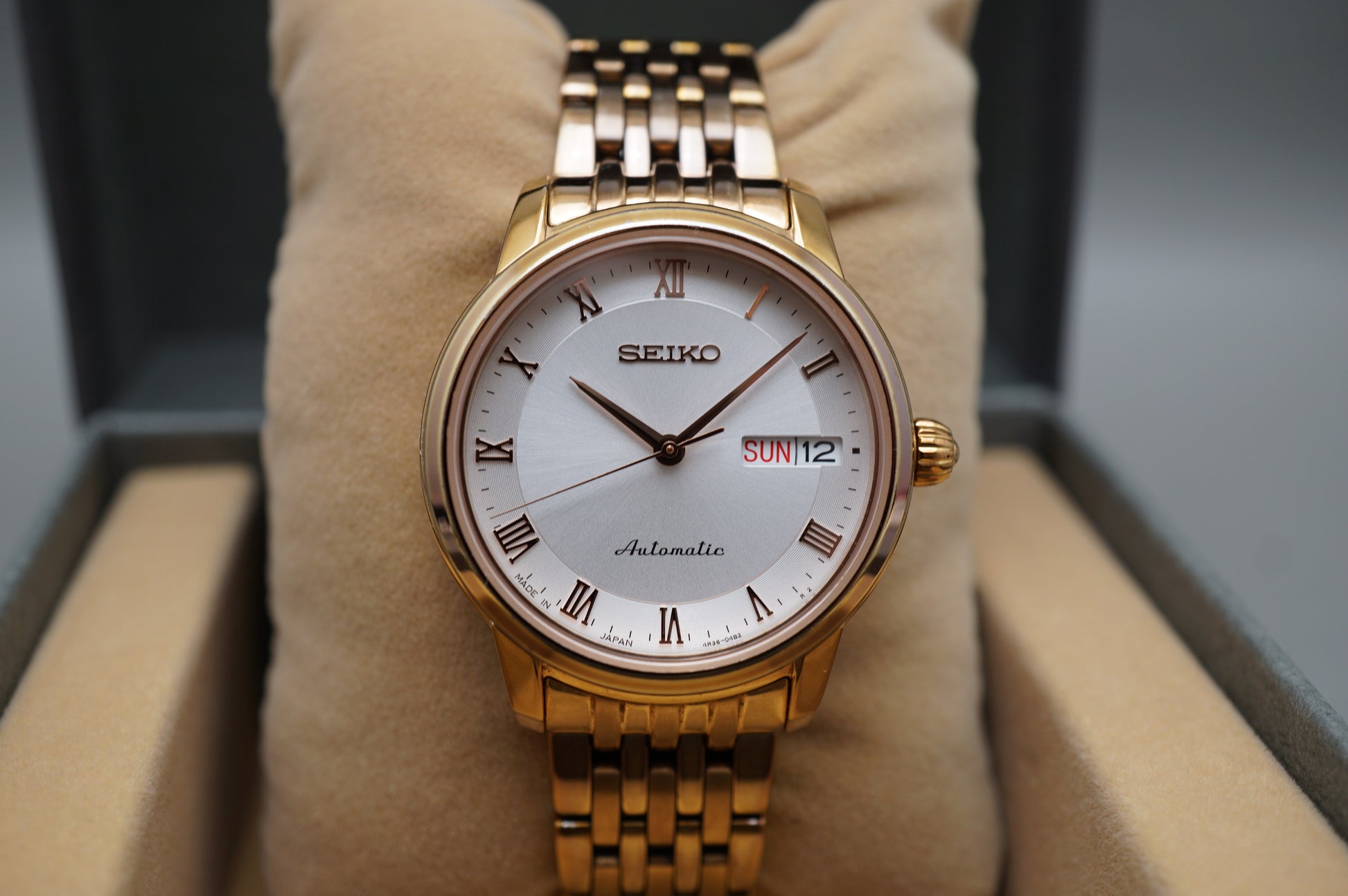 For sale is a Seiko Presage SRRY016 Rose Gold Tone 34mm Automatic Watch