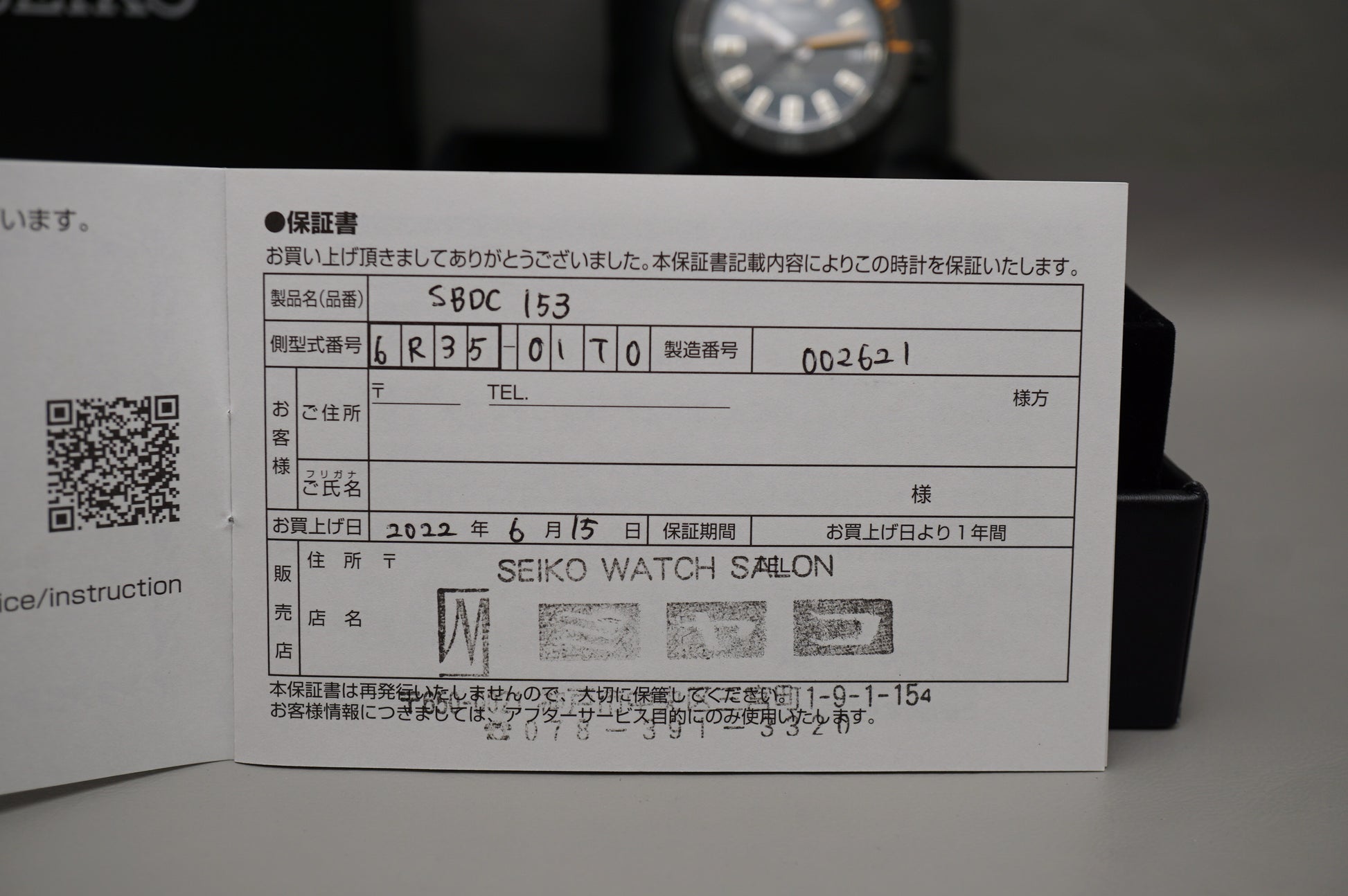 Warranty card: Stamped 2022.6.15