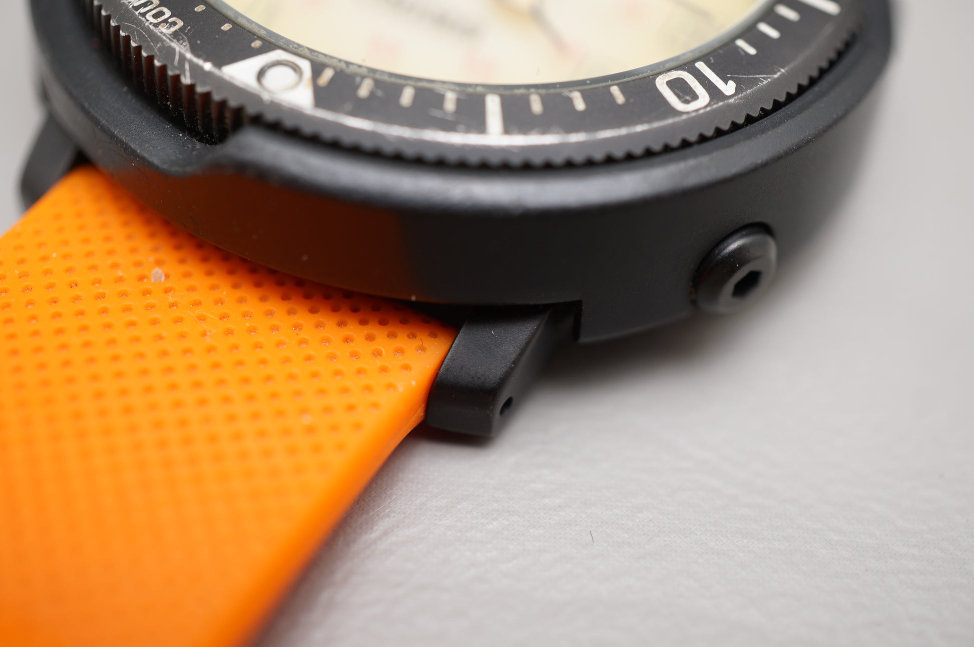 Wear on crystal and bezel, crown screws down correctly.