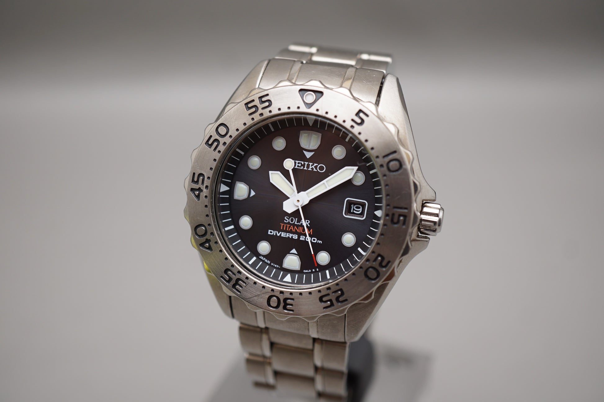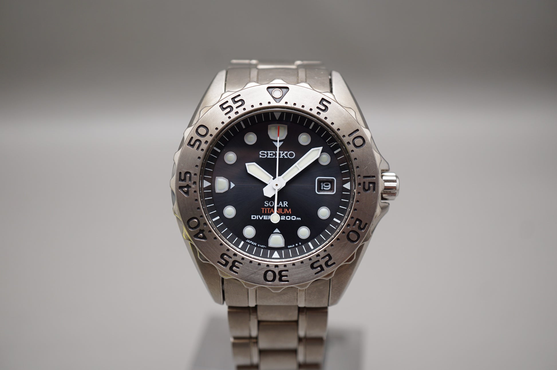 For sale is a Seiko Prospex SBDN013 Titanium Divers 200M Solar Quartz Watch