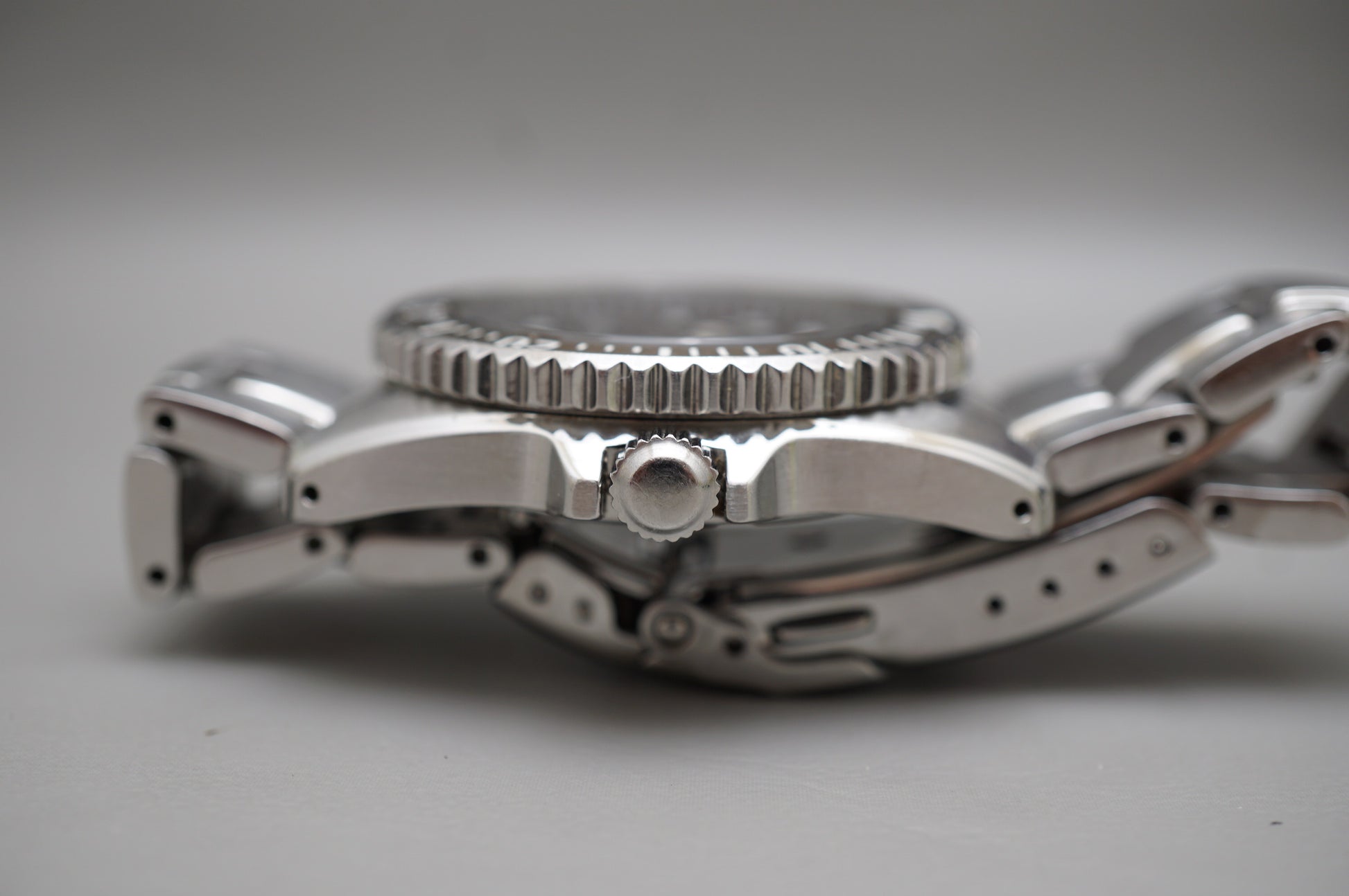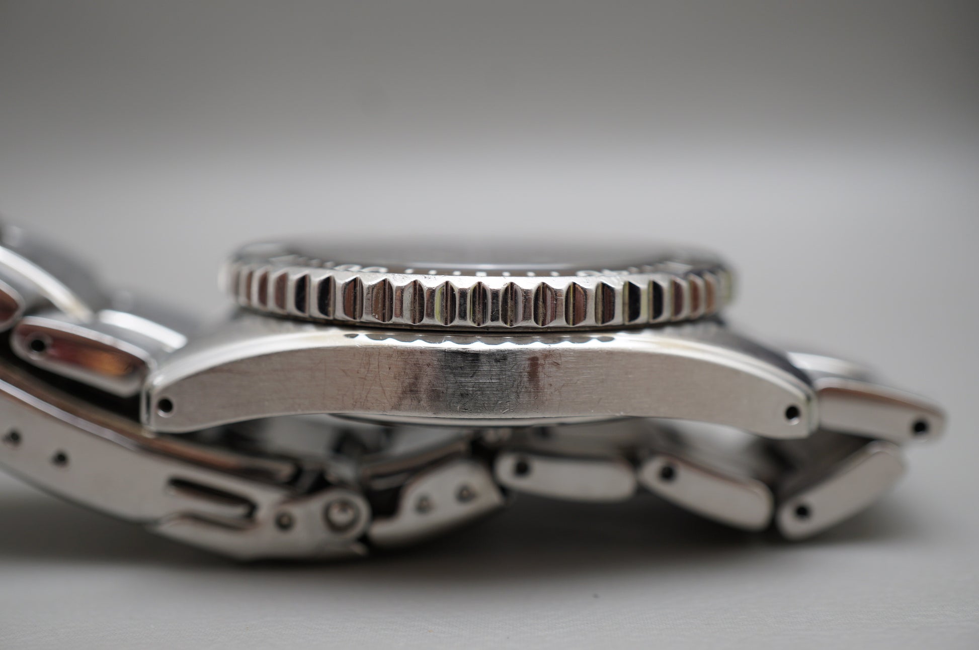 Wear on crystal near 12 oclock marker, bezel turns but difficult, crown screws down correctly.