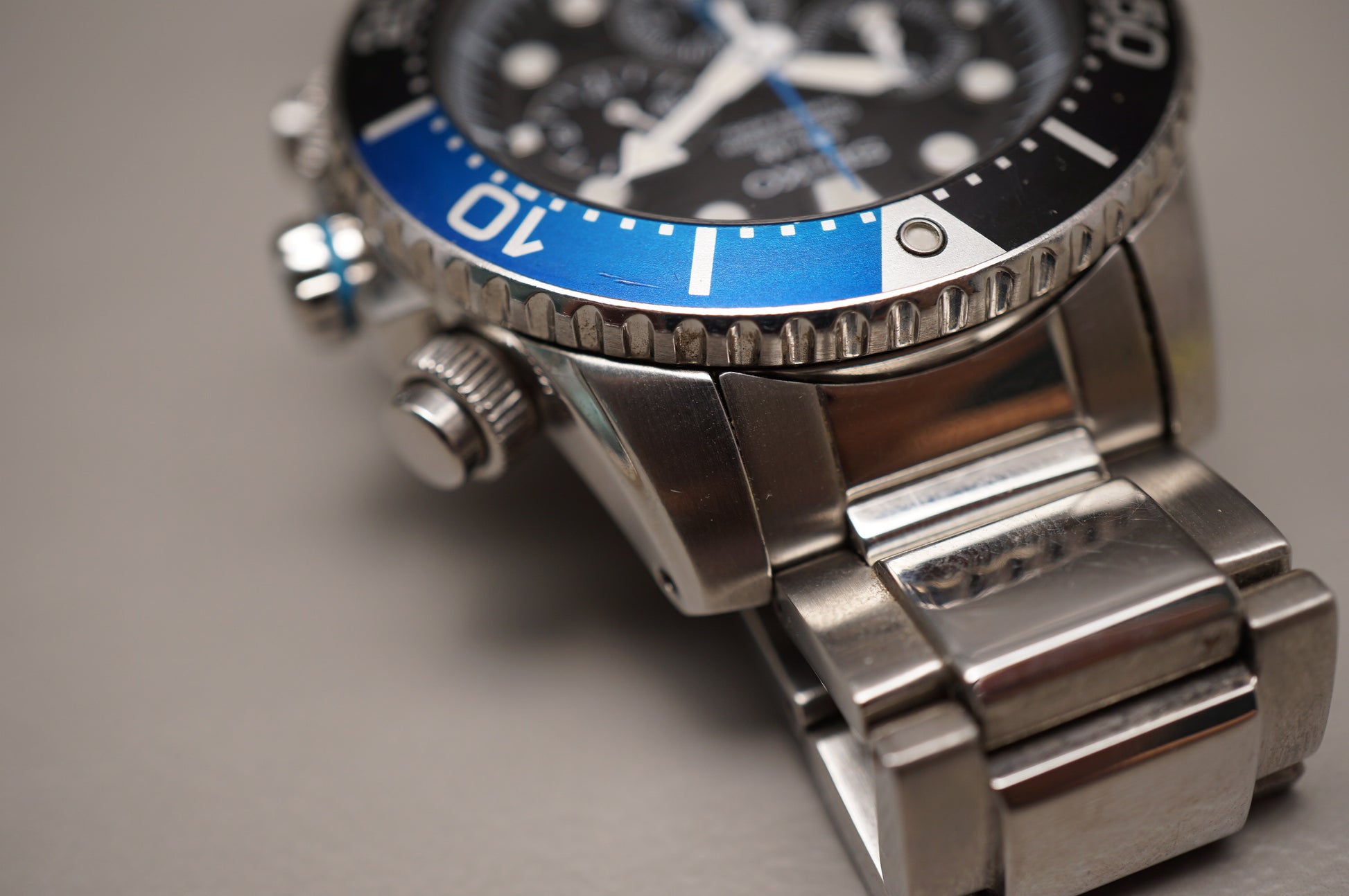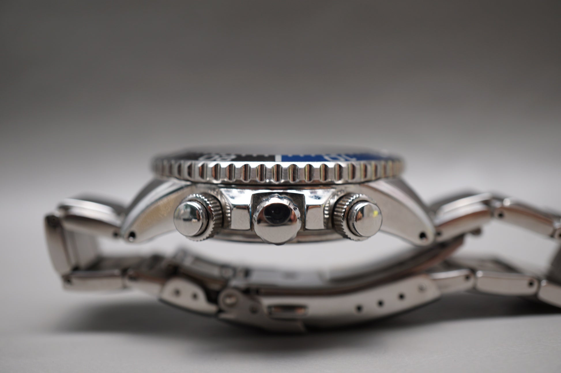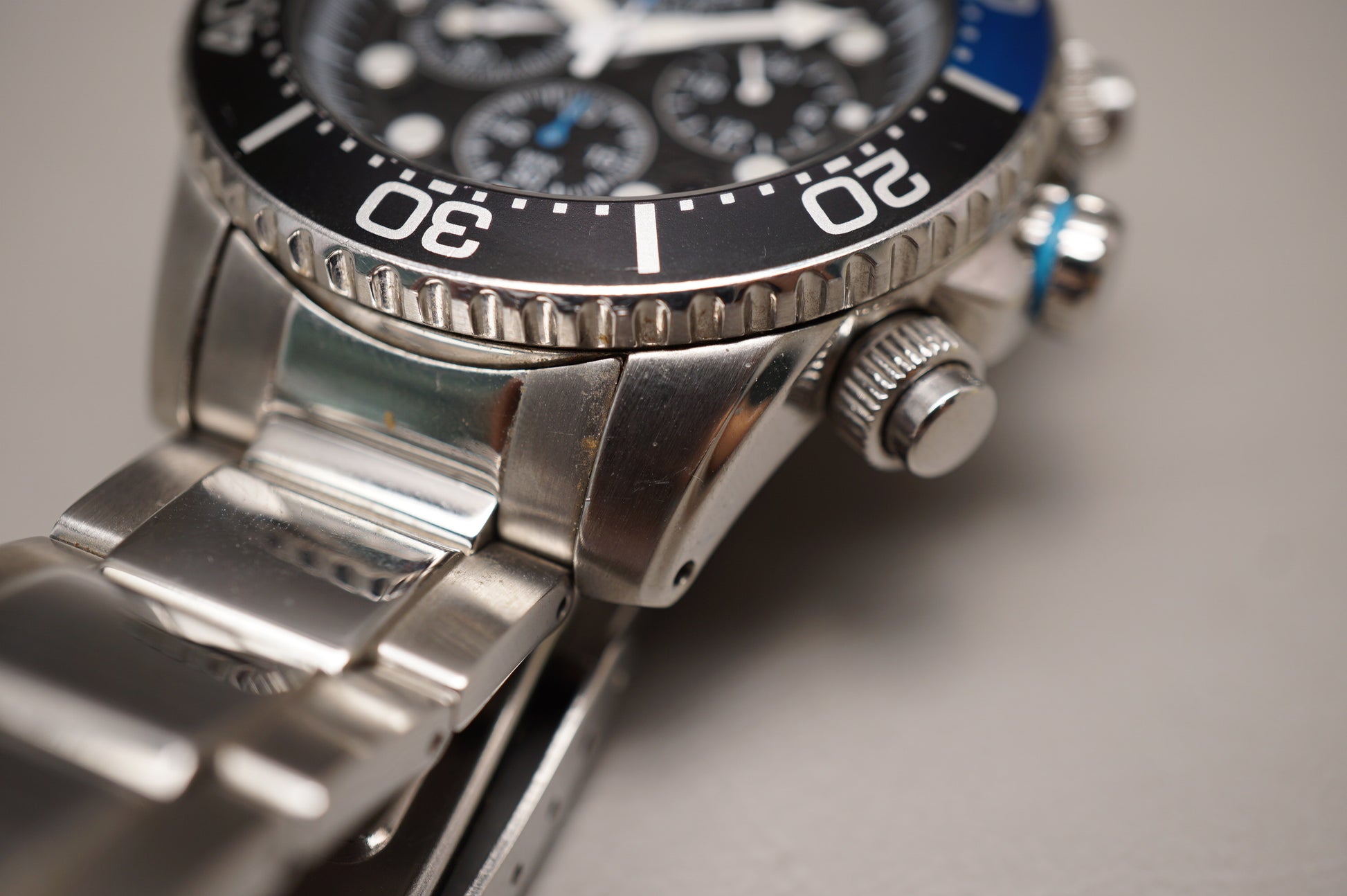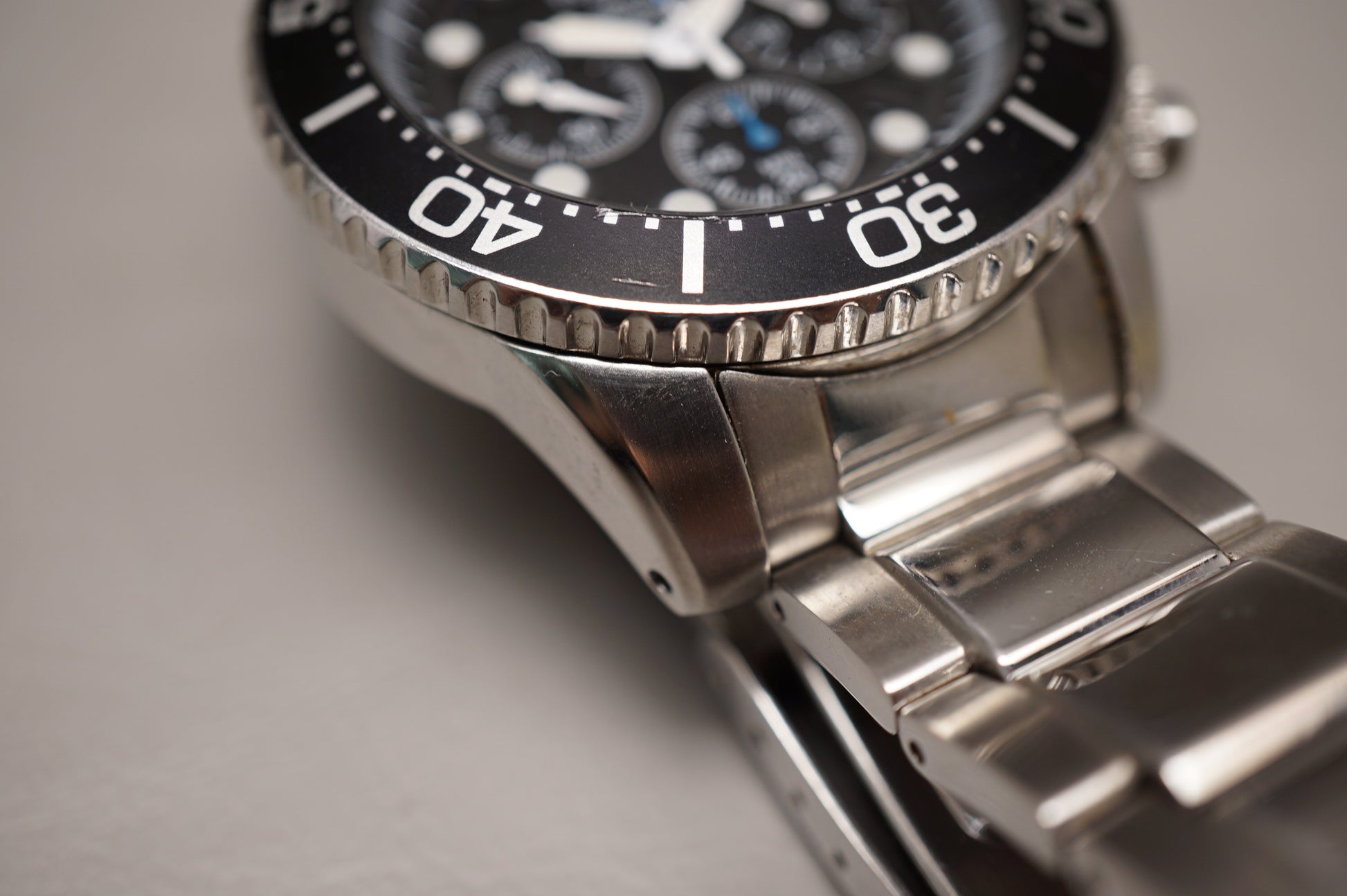 Solar charging capacitor replaced May 2025. Crown and pushers screw down correctly. Chronograph functions correctly, no wear on crystal.