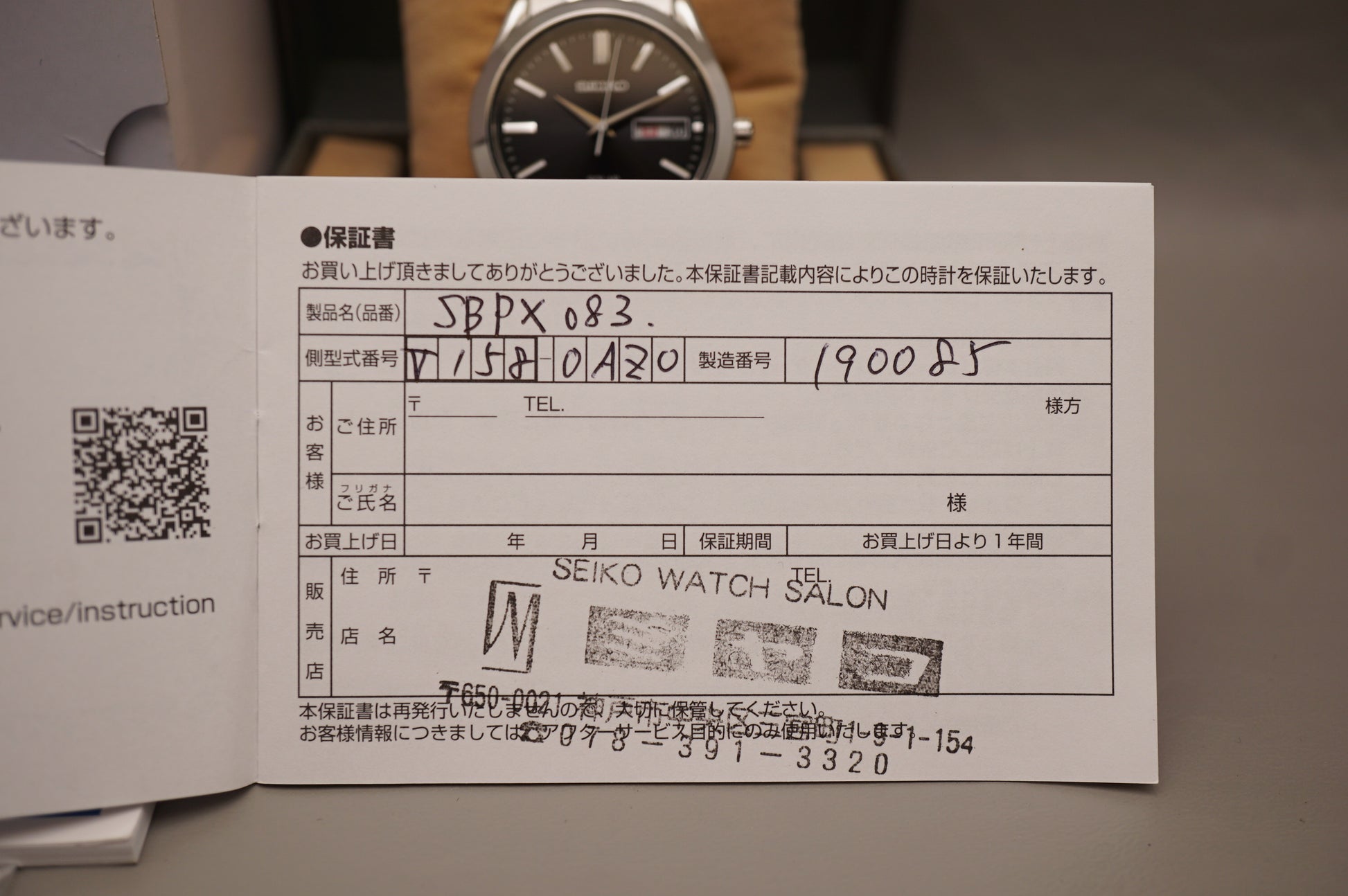 Seiko Selection SBPX083 V158 Black Dial Solar Quartz JDM Watch