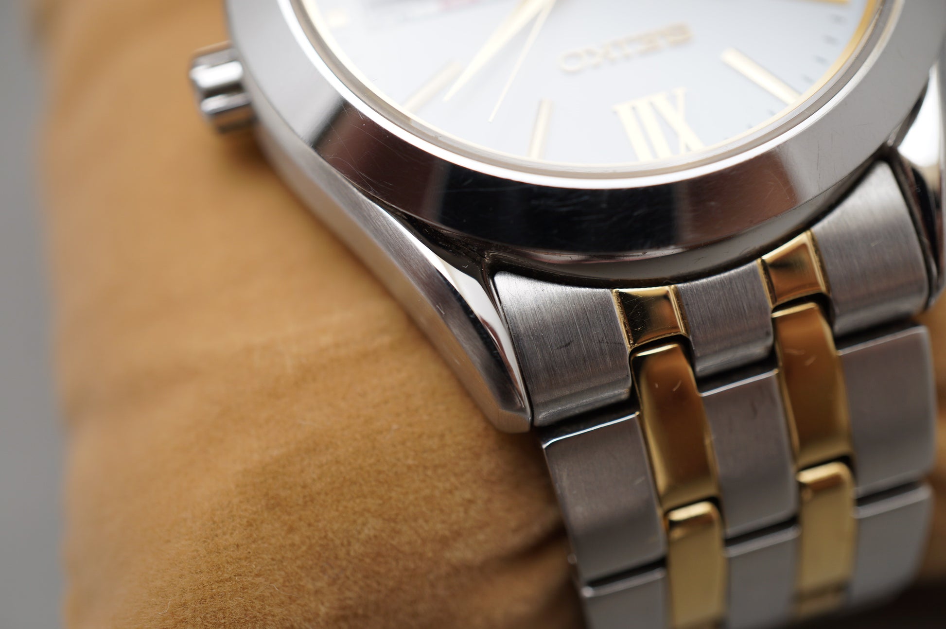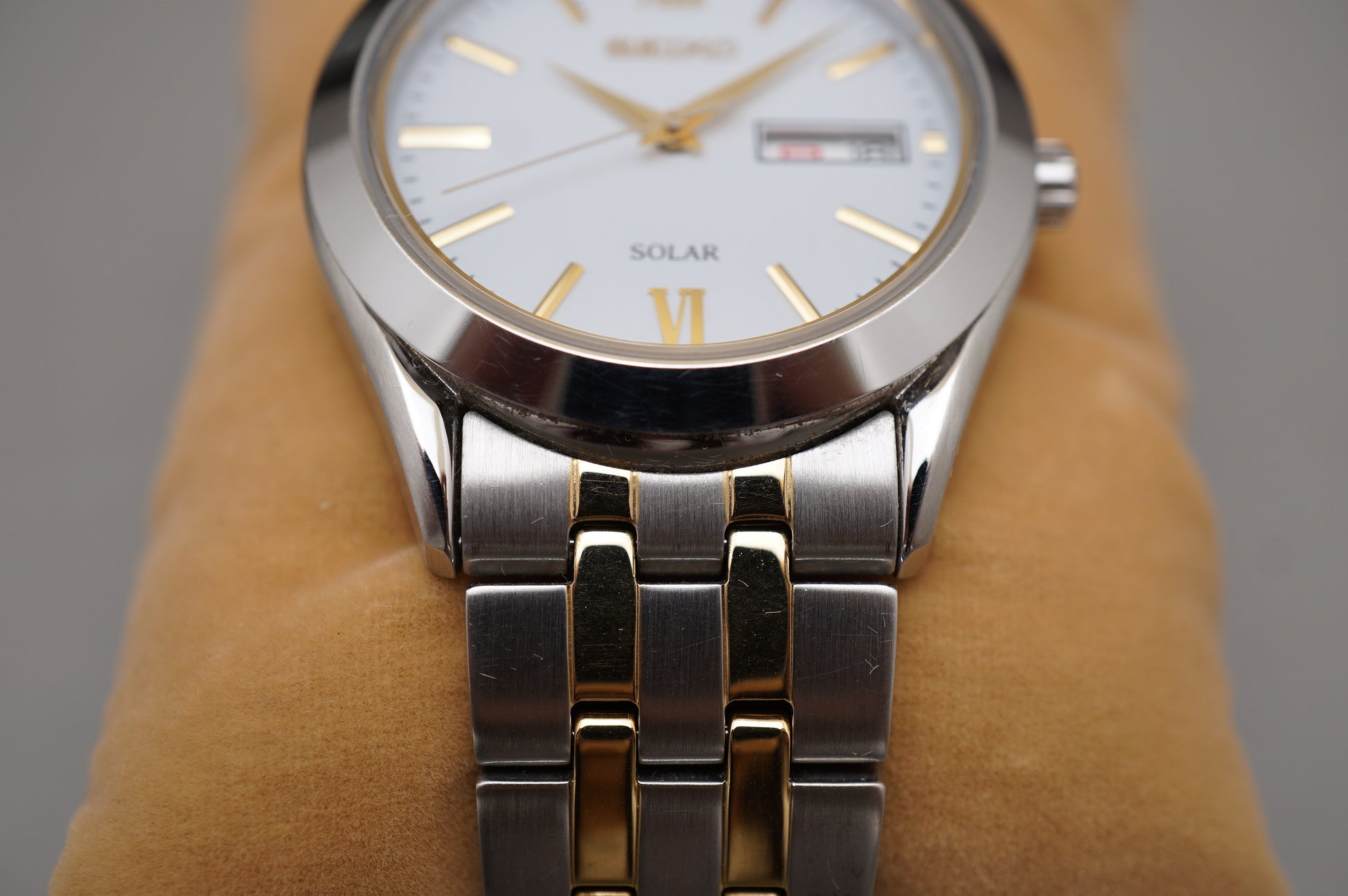 For sale is a Seiko Selection SBPX085 Gold Two Tone White Dial Solar Quartz Watch
