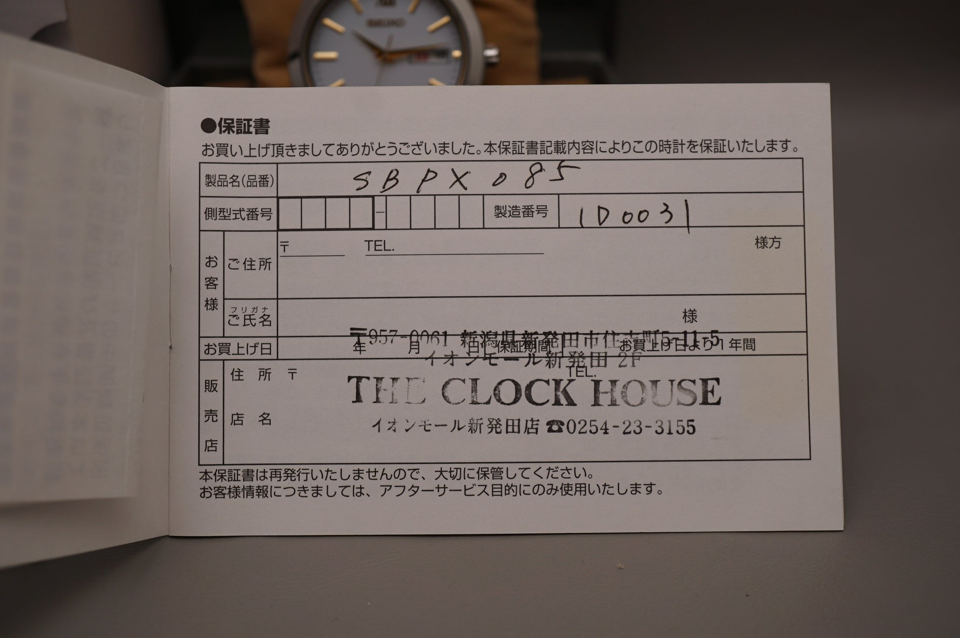 Warranty card: Stamped, receipt dated 2022-5-16
