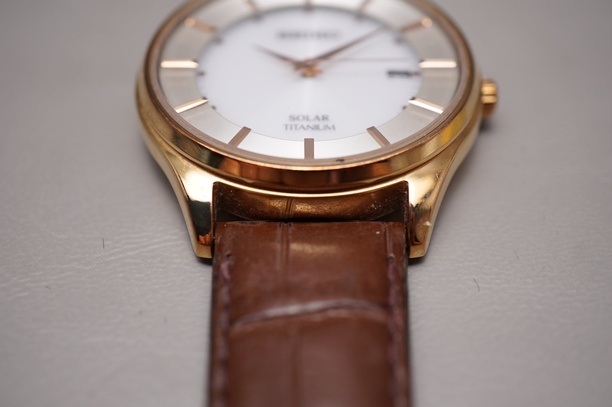 Seiko Selection SBPX106 V157 Rose Gold Tone Titanium Solar Quartz JDM Watch