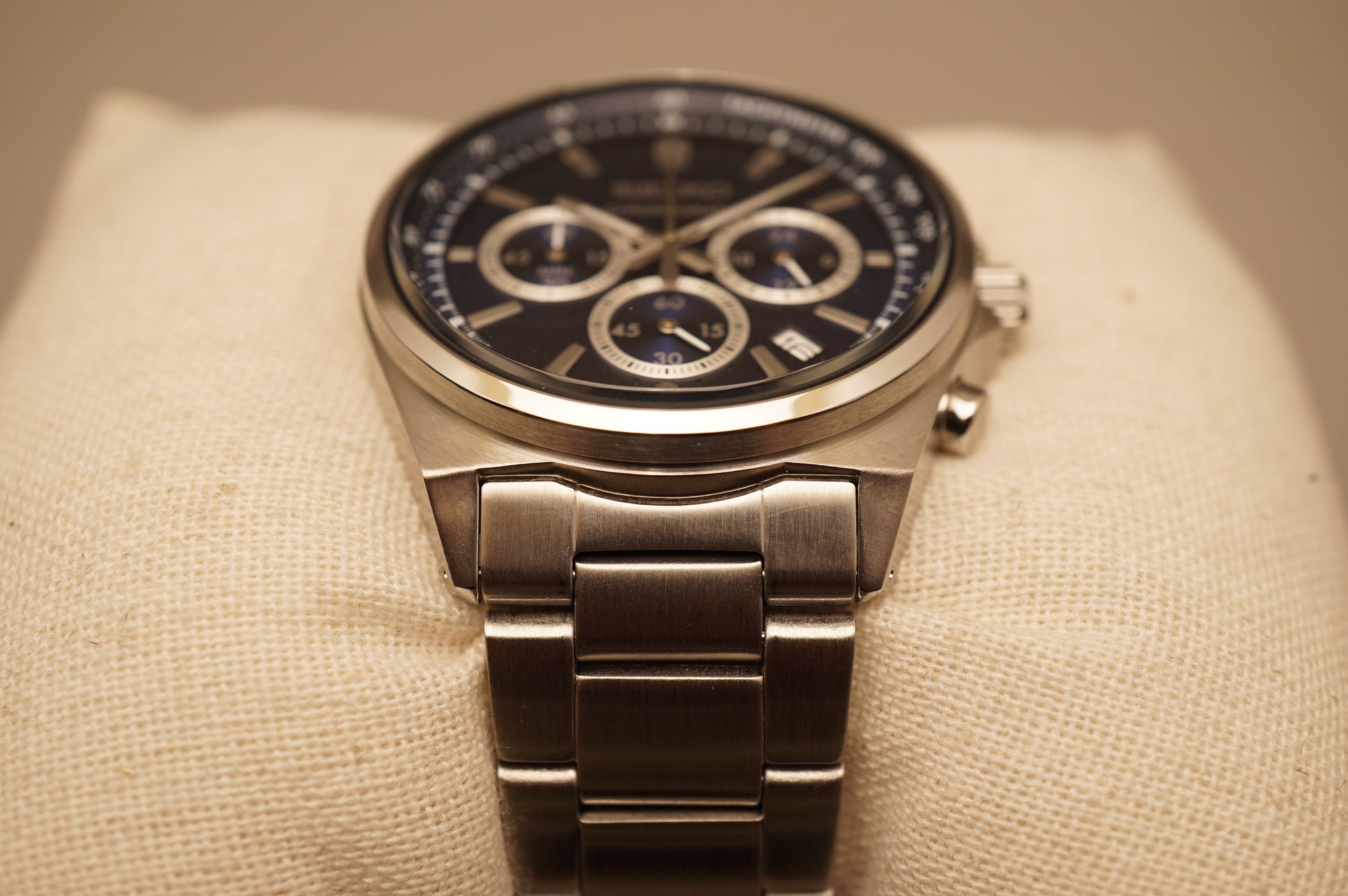 For sale is a Seiko Selection SBTR033 S-Series Dark Blue Dial Quartz Chronograph Watch