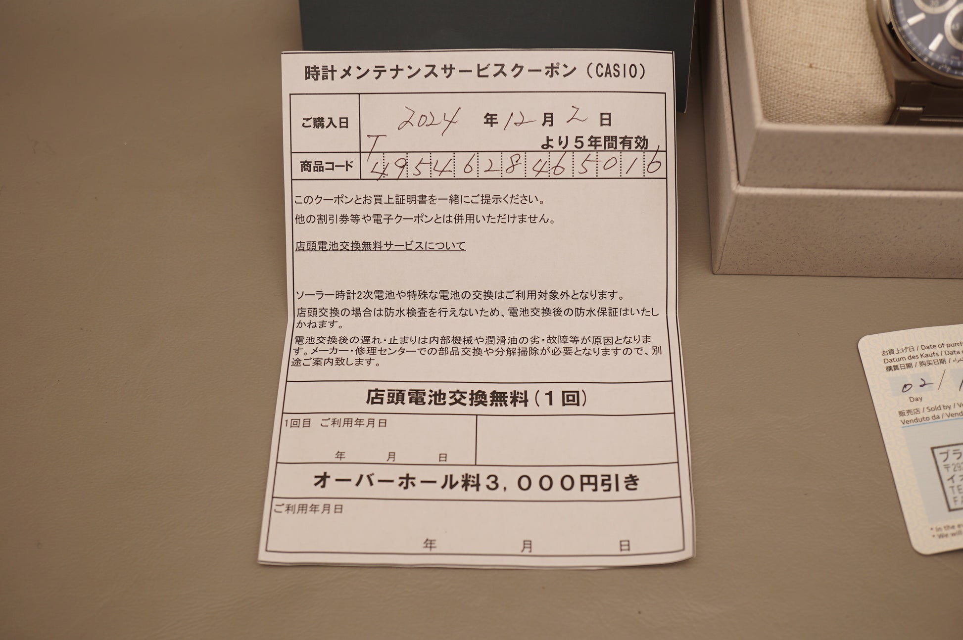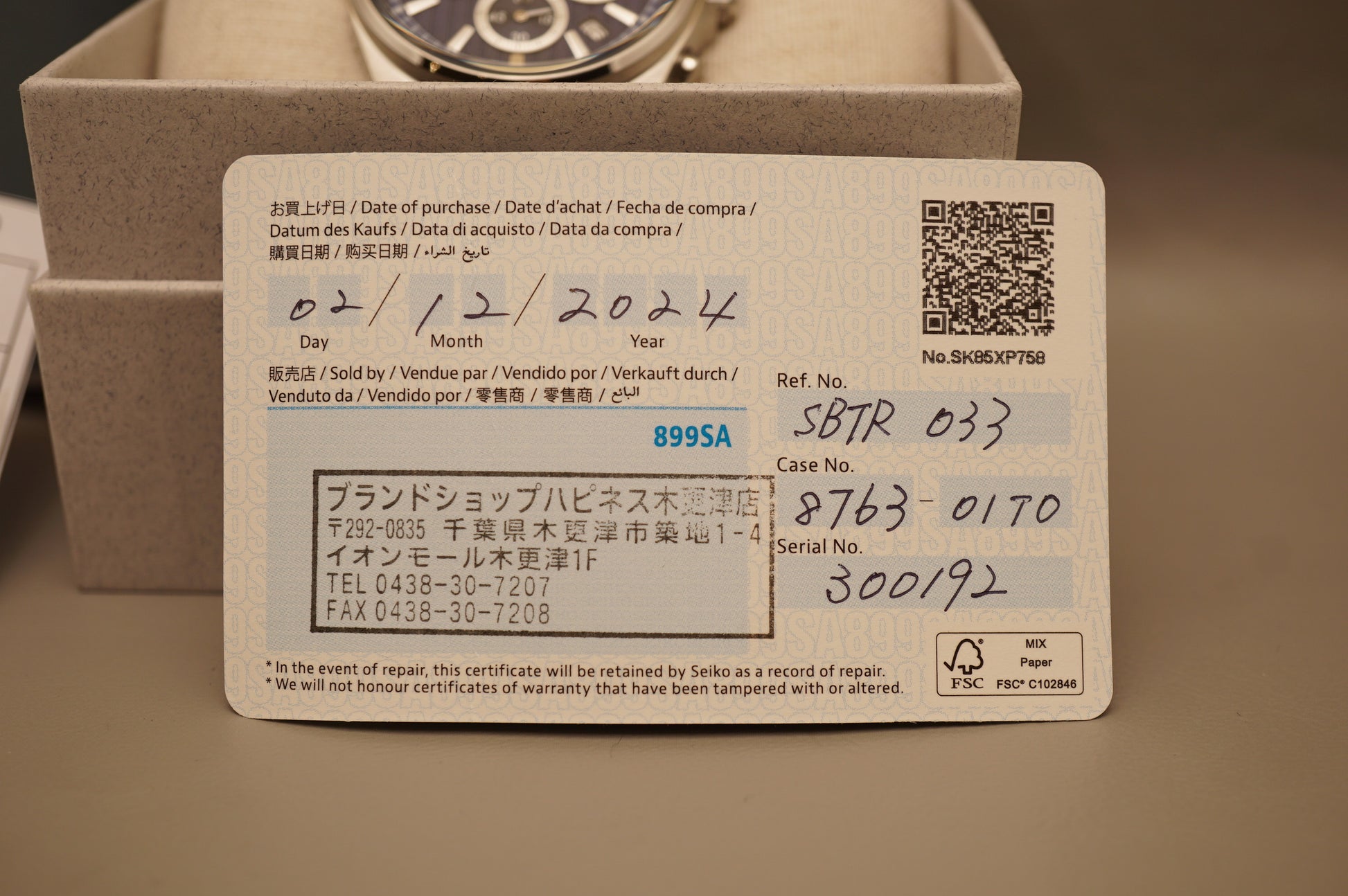 Warranty card: Stamped 02/12/2024