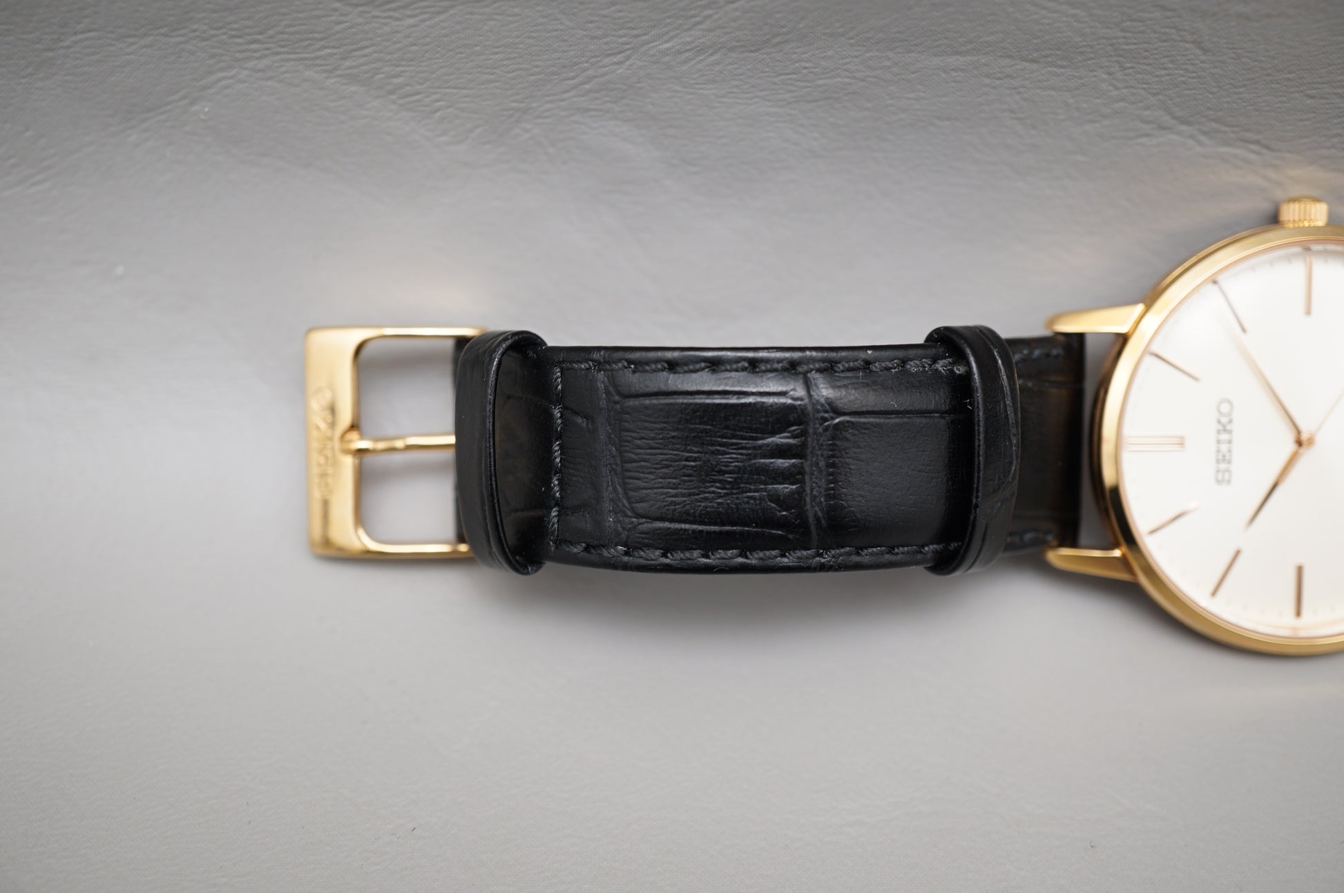 For sale is a Seiko Selection SCXP076 Gold Feather Reissue Quartz Watch