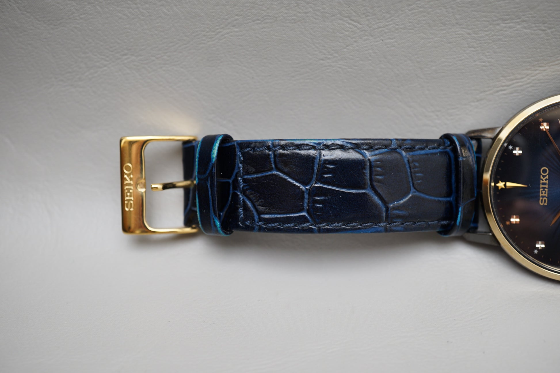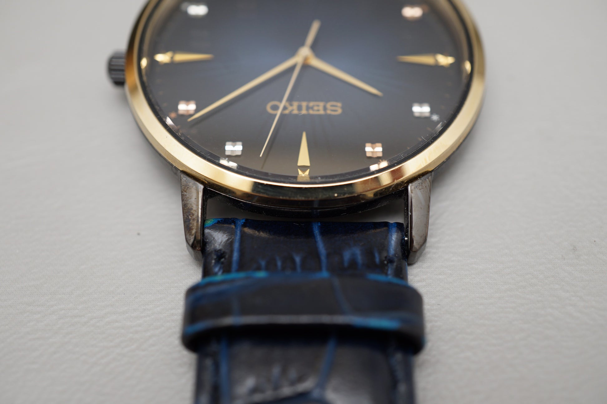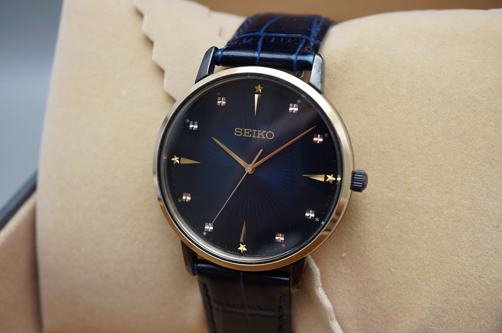 Seiko Selection SCXP132 7N01 Gold Feather Reissue Limited Blue Quartz Watch