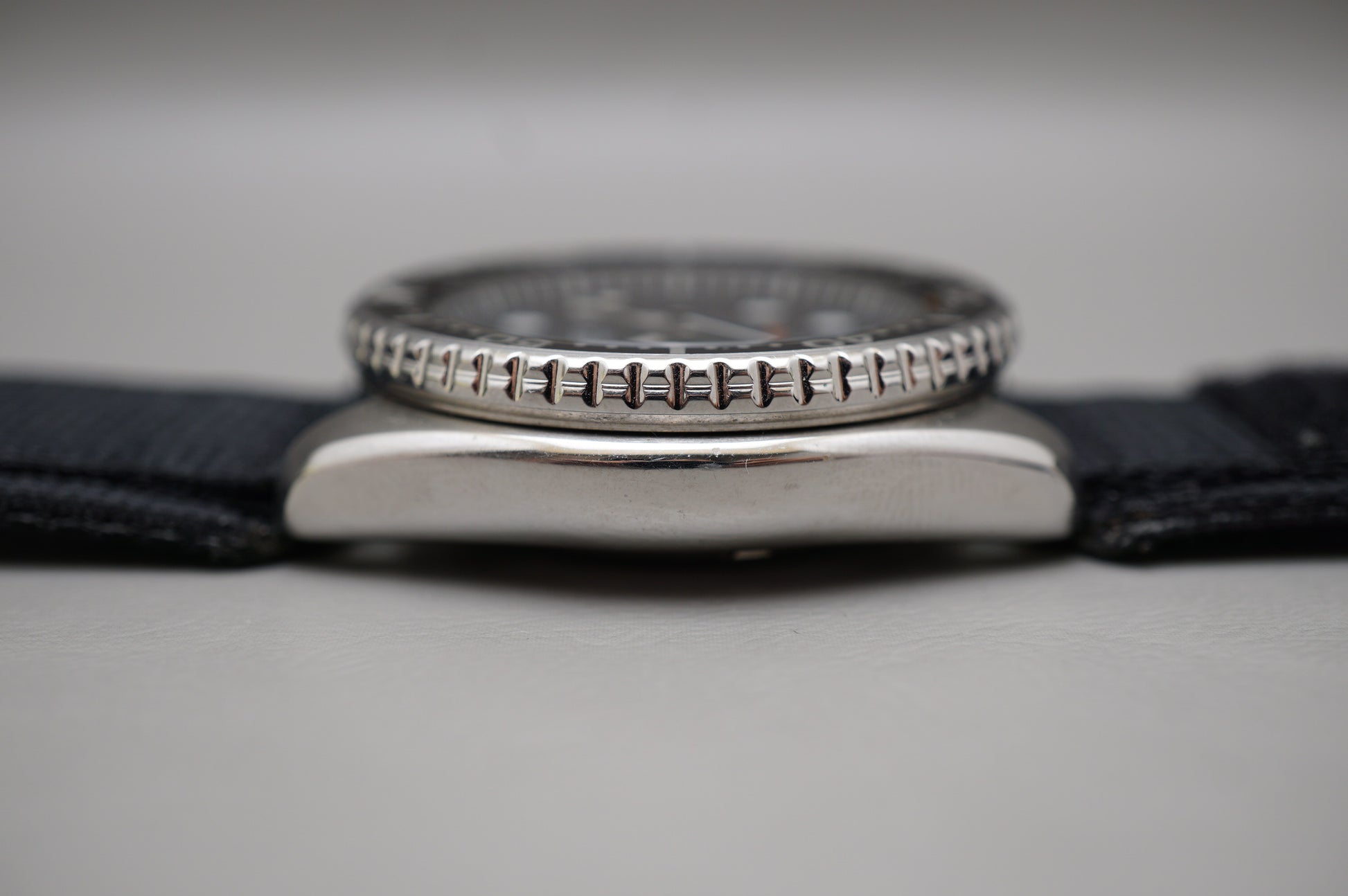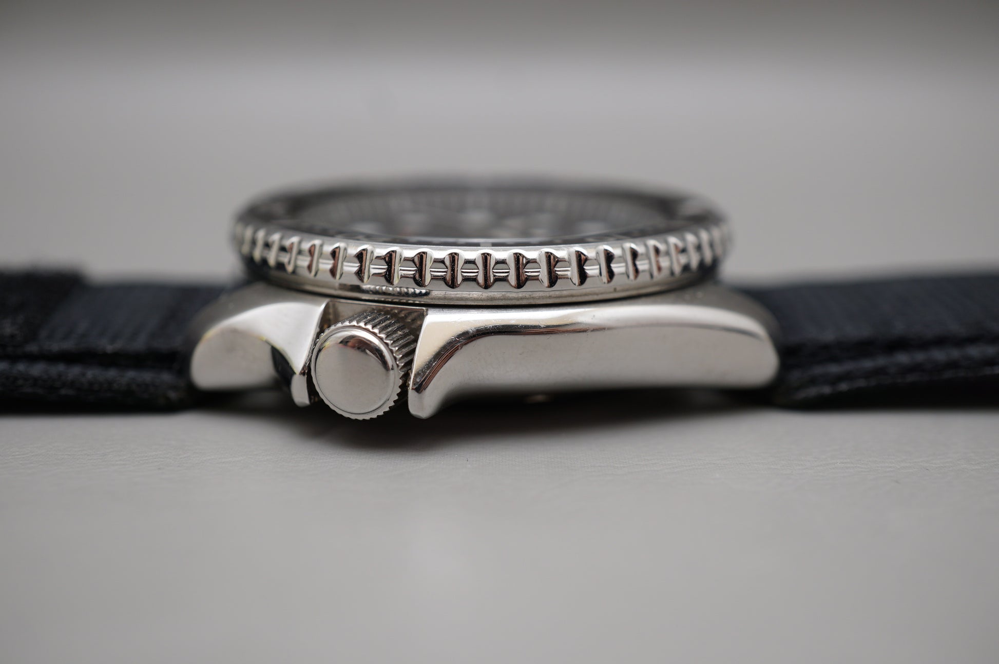 Light wear on crystal, crown screws down correctly, bezel turns and clicks unidirectionally. Watch head is in original condition.