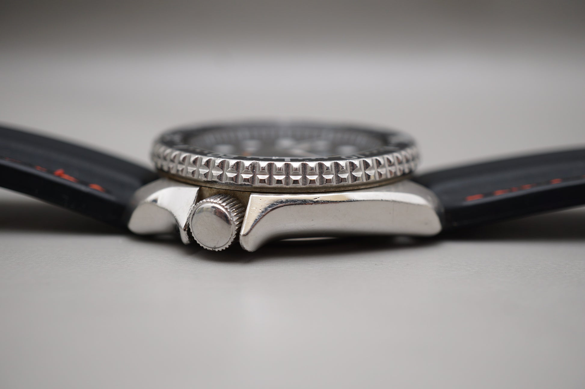Crown screws down correctly, bezel turns and clicks unidirectionally, wear on crystal. Original condition.