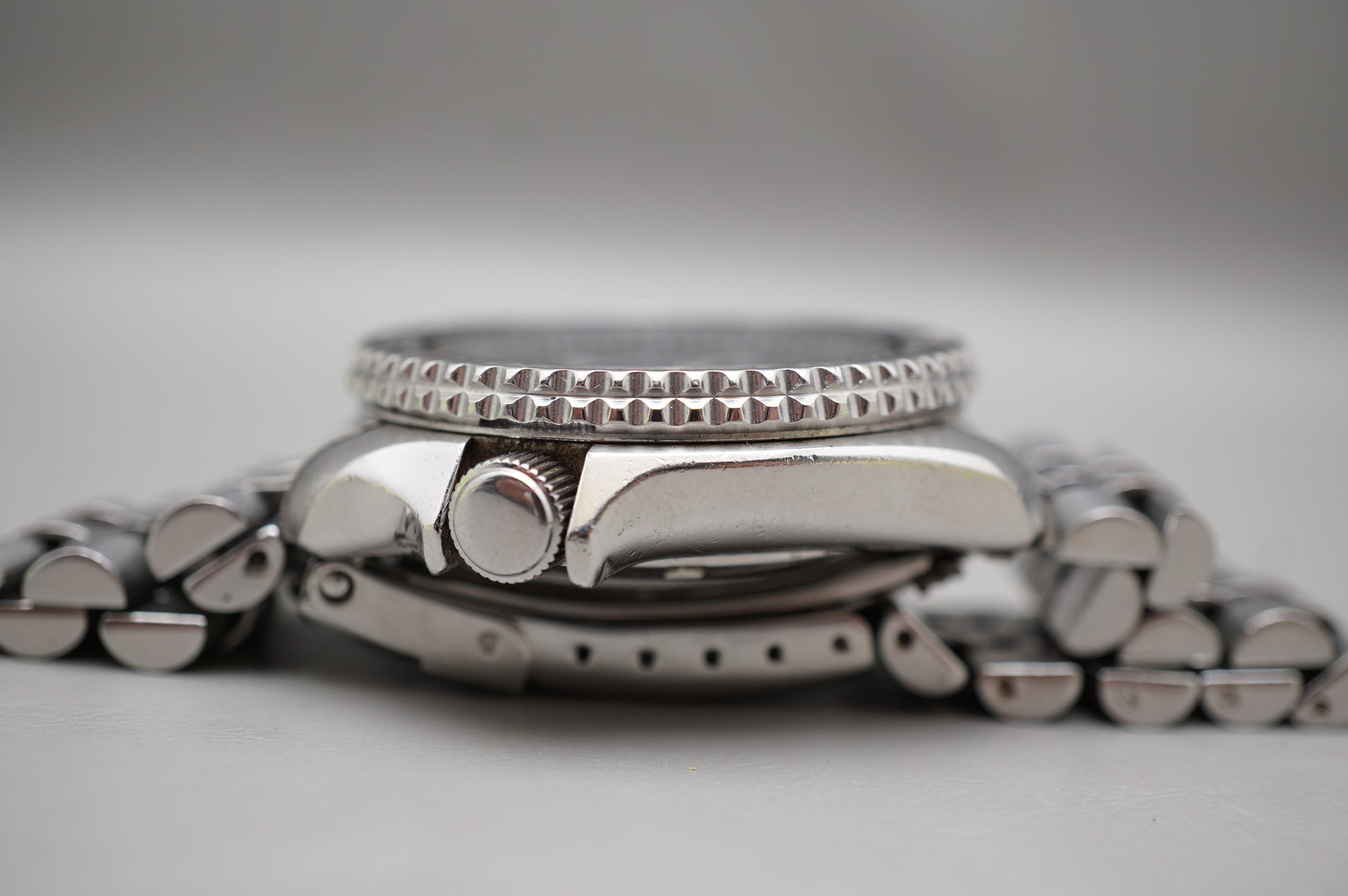 Crown screws down correctly, bezel turns and clicks unidirectionally. Wear on crystal, watch is losing time on the timegrapher. All original condition.