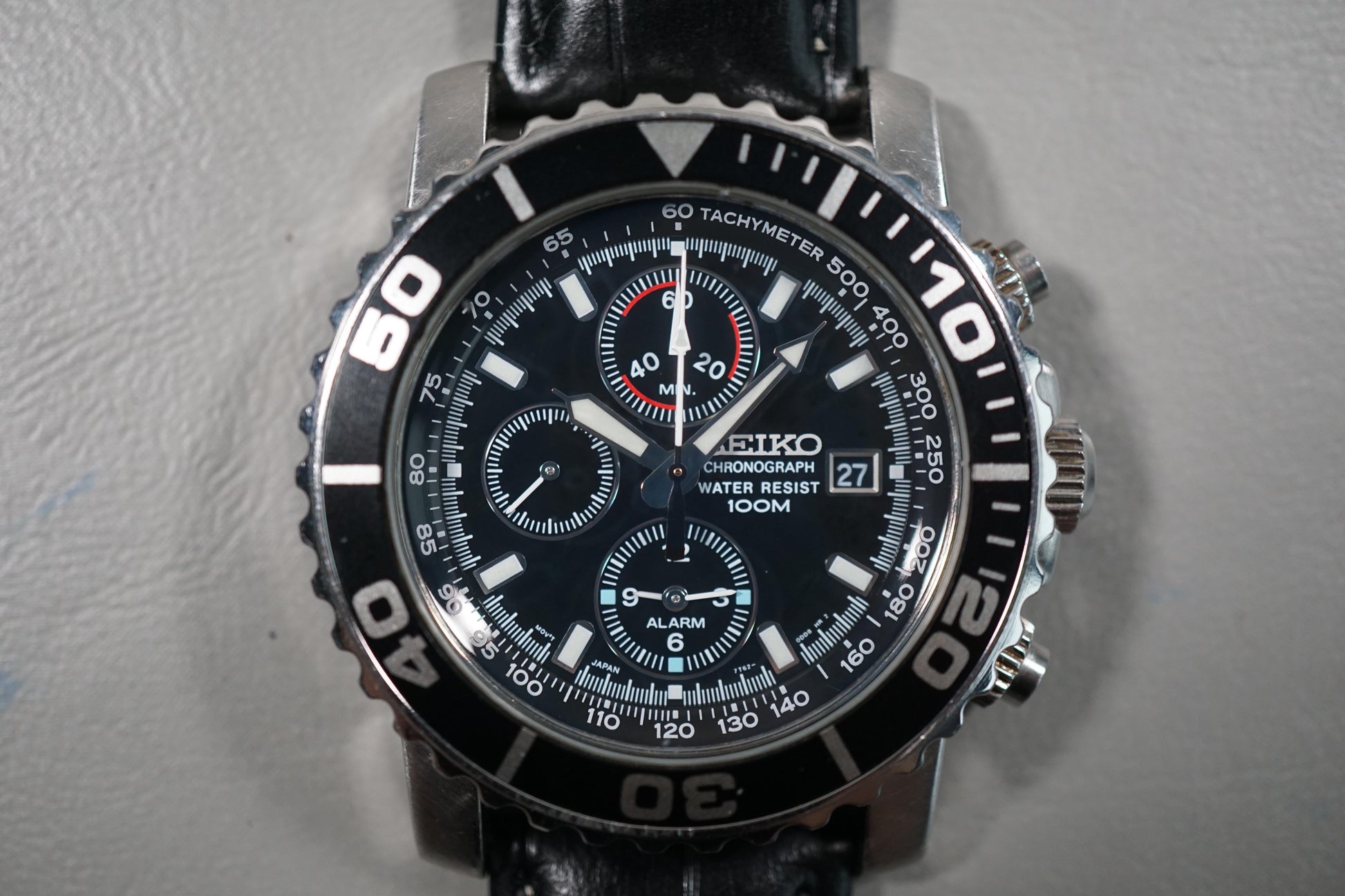 For sale is a Seiko SNA225 Black Dial Quartz Chronograph Watch
