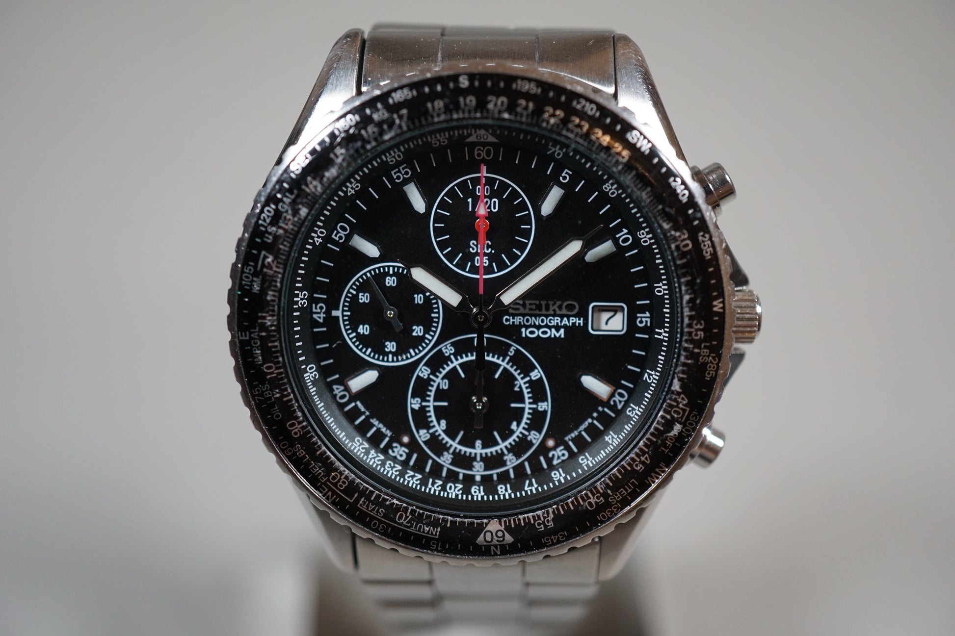 For sale is a Seiko SND253 Flightmaster Pilot Chronograph Quartz Watch