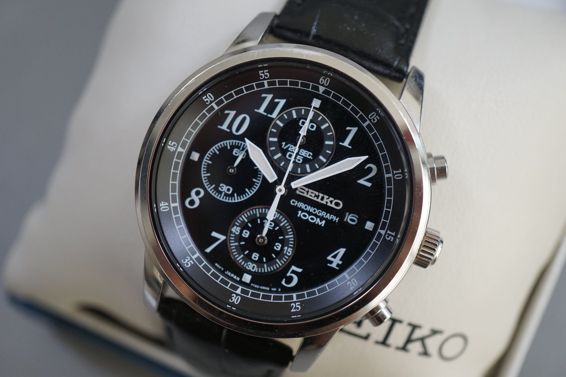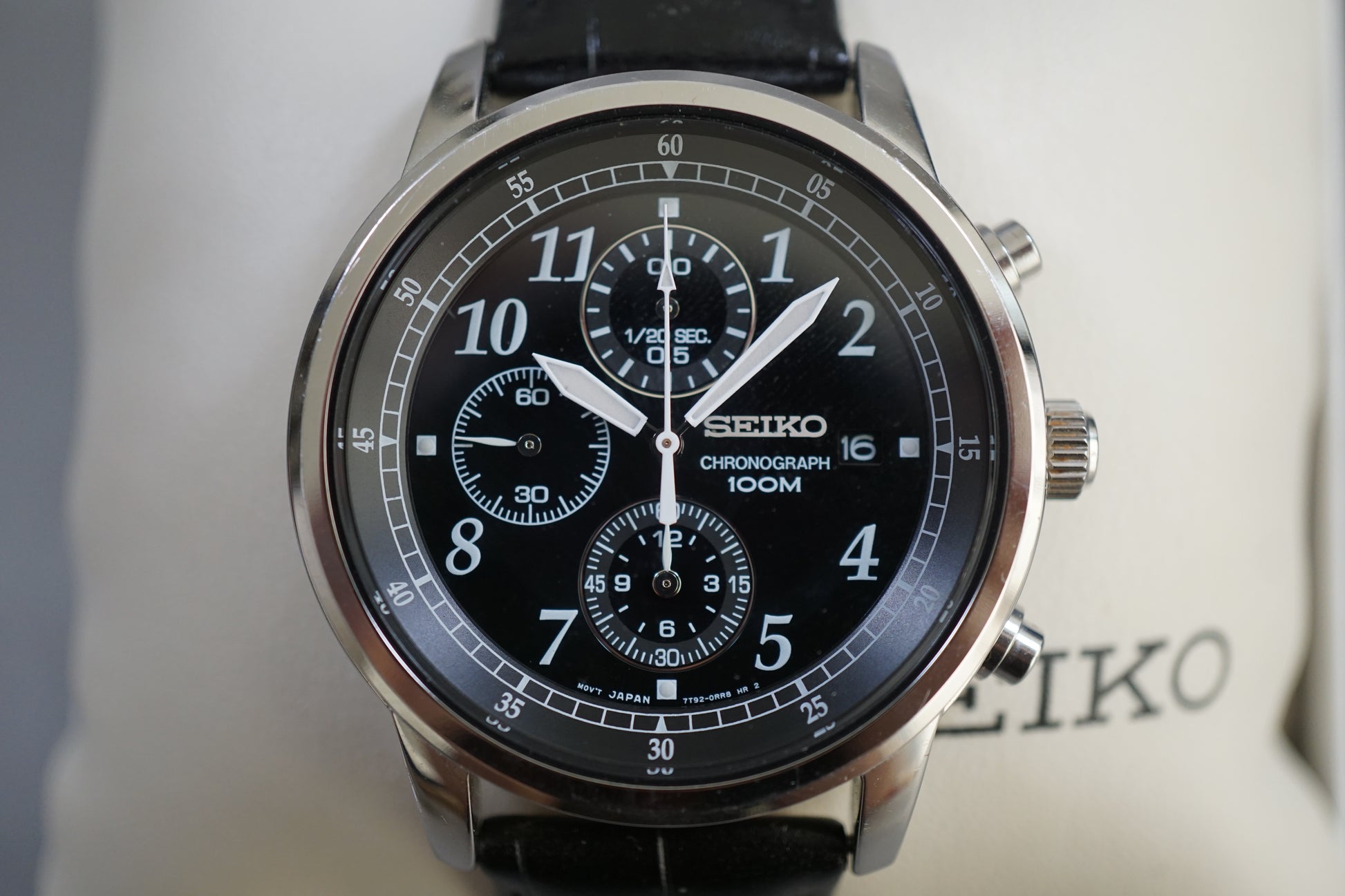 For sale is a Seiko SNDC33 Black Numeral Dial Chronograph Quartz Watch