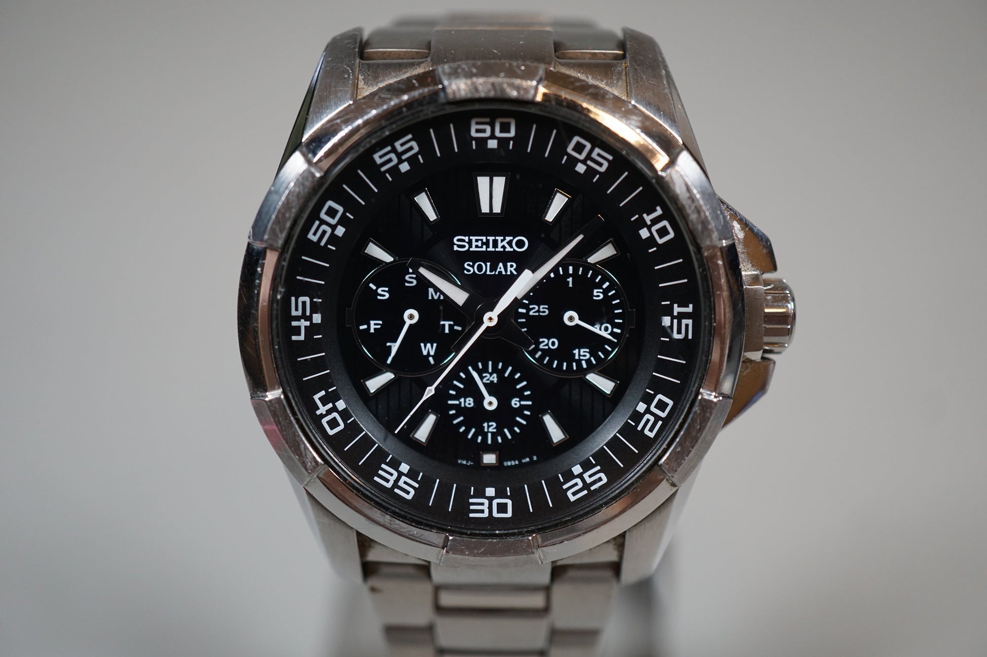 Seiko SNE015P1 V14J Day Date Black Dial Solar Quartz Watch