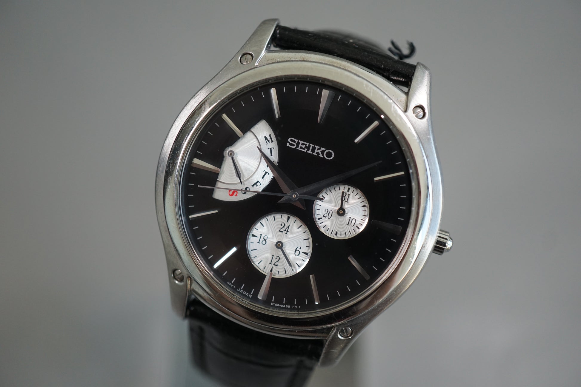 For sale is a Seiko SNT005P1 Black Dial Retrograde Day Date Quartz Watch