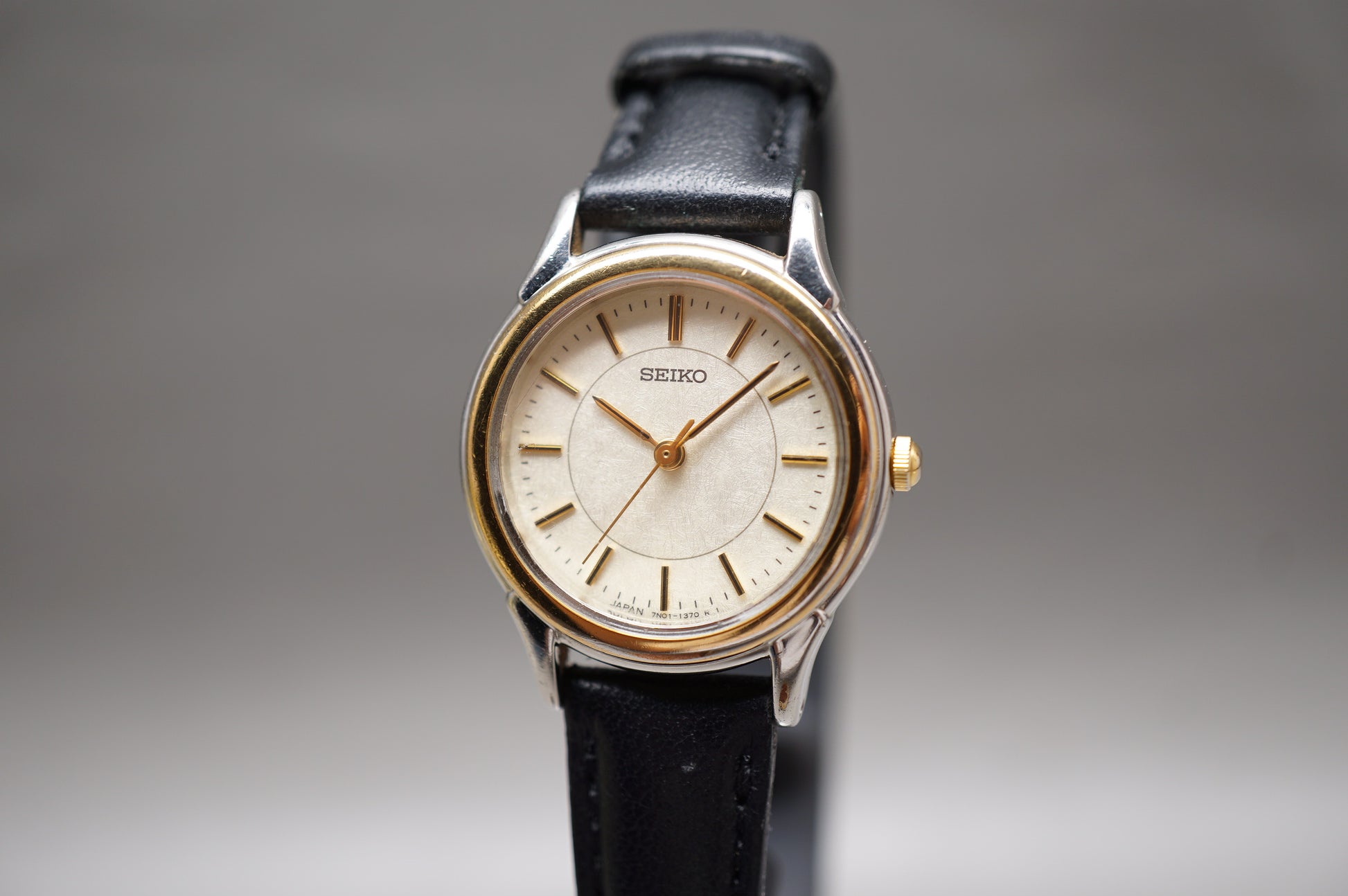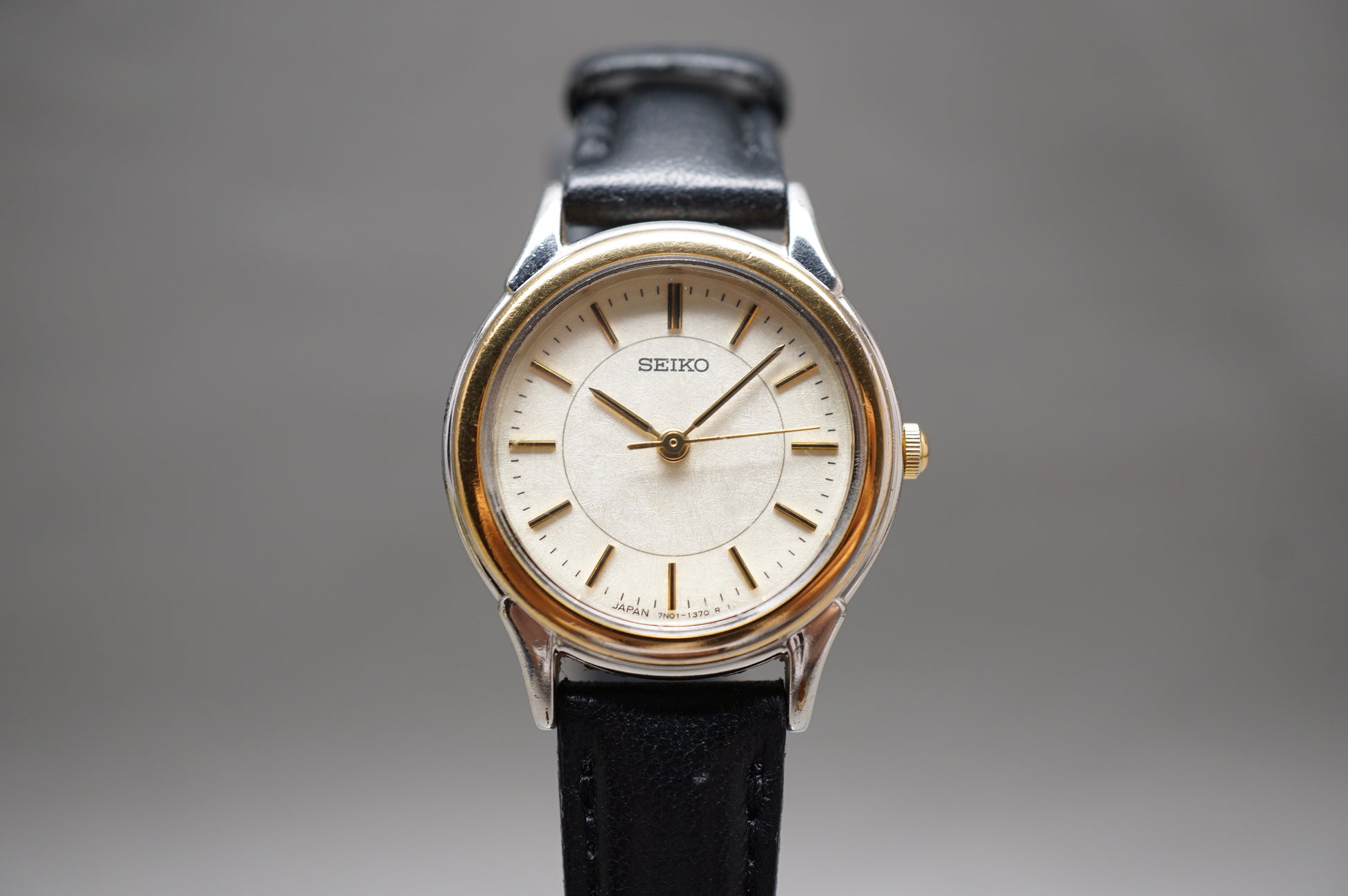 For sale is a Seiko Spirit 7N01-6880 Two Tone Gold Tone Quartz Ladies Watch