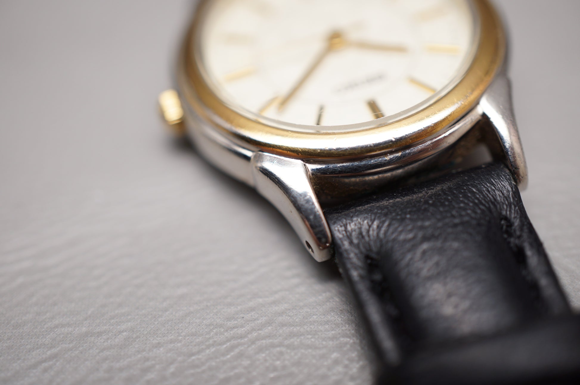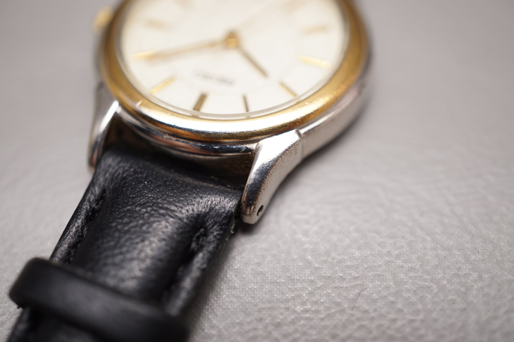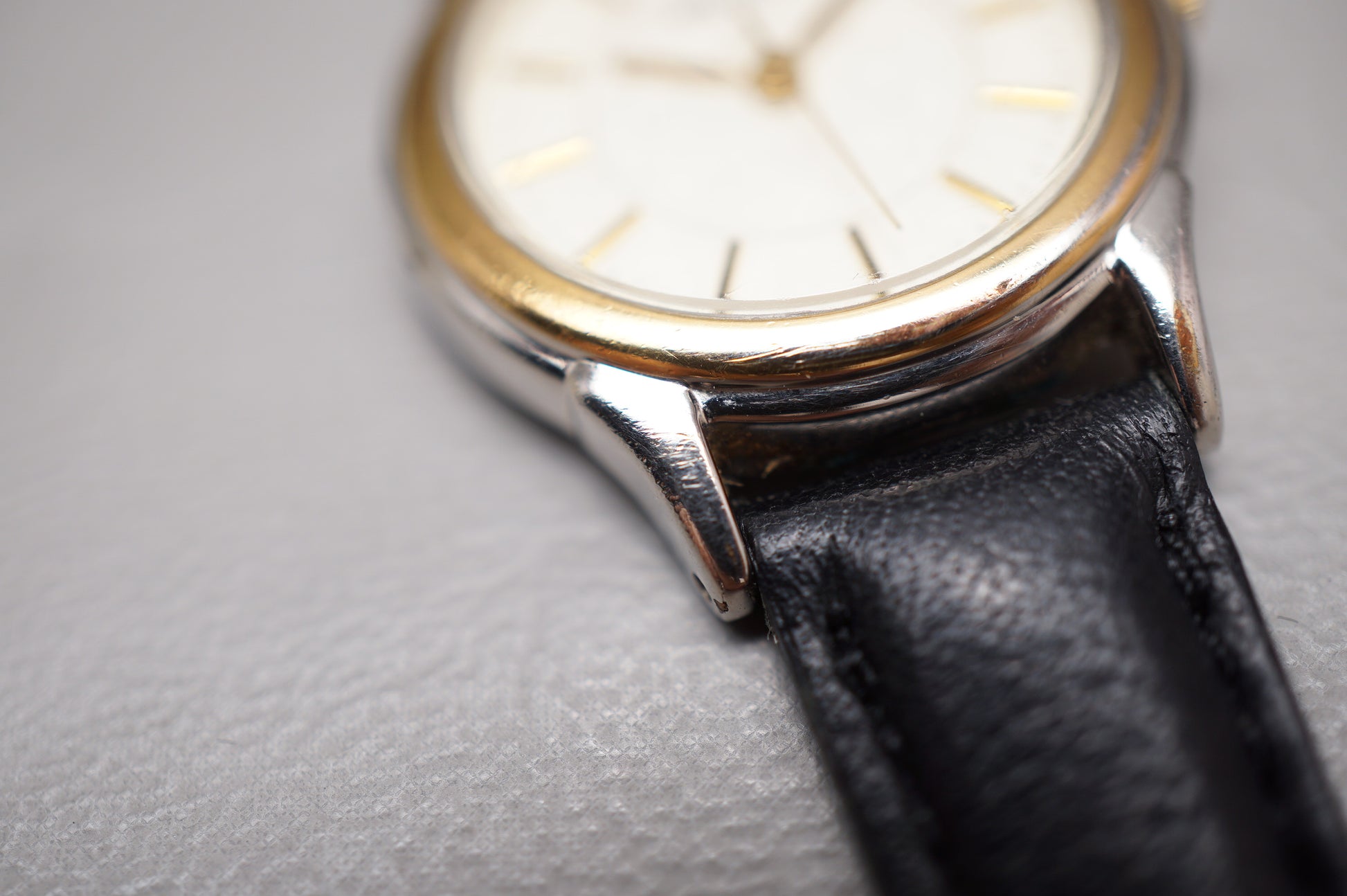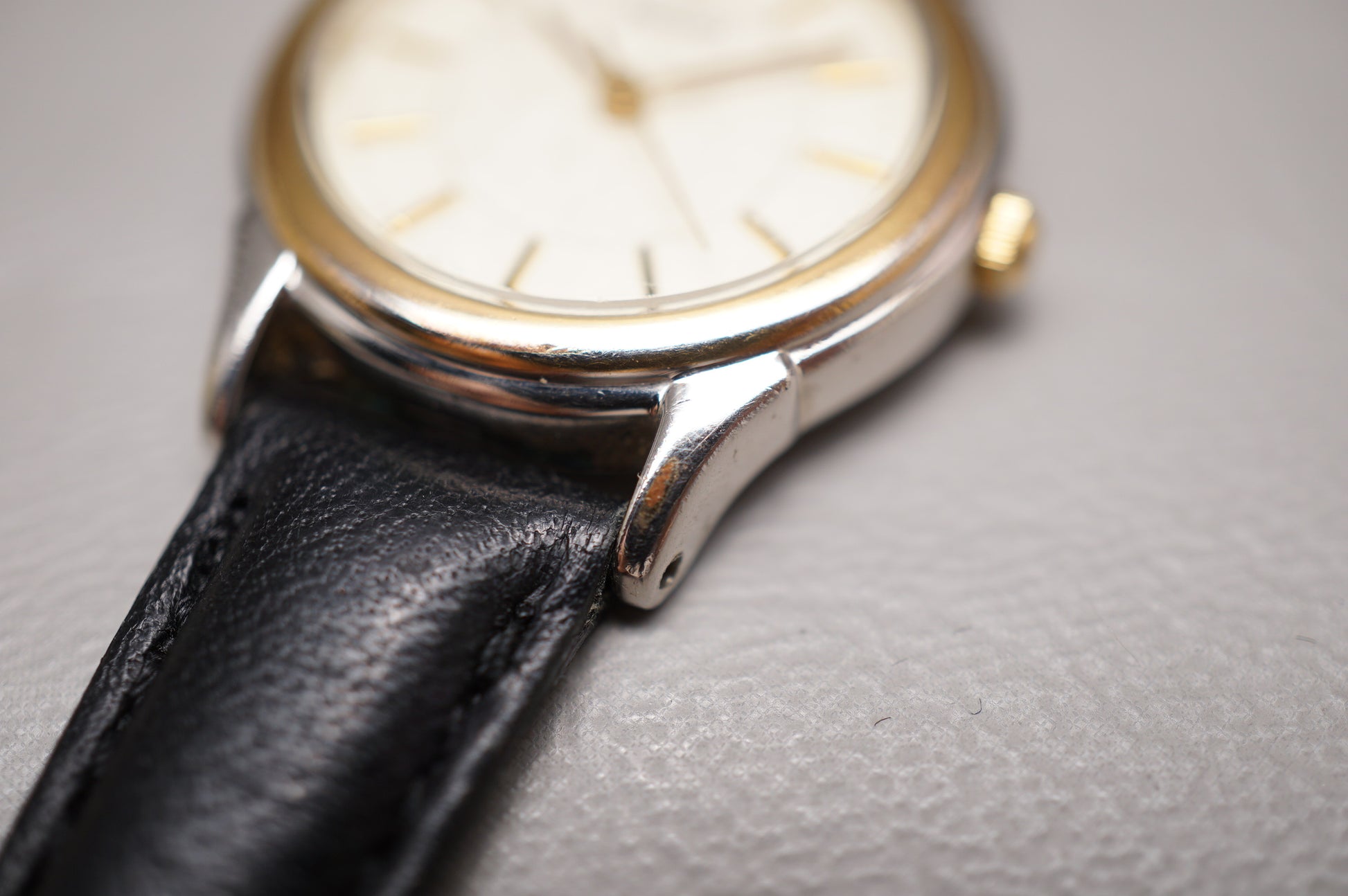 Strap: Aftermarket leather, cracking and deterioration from age and wear.