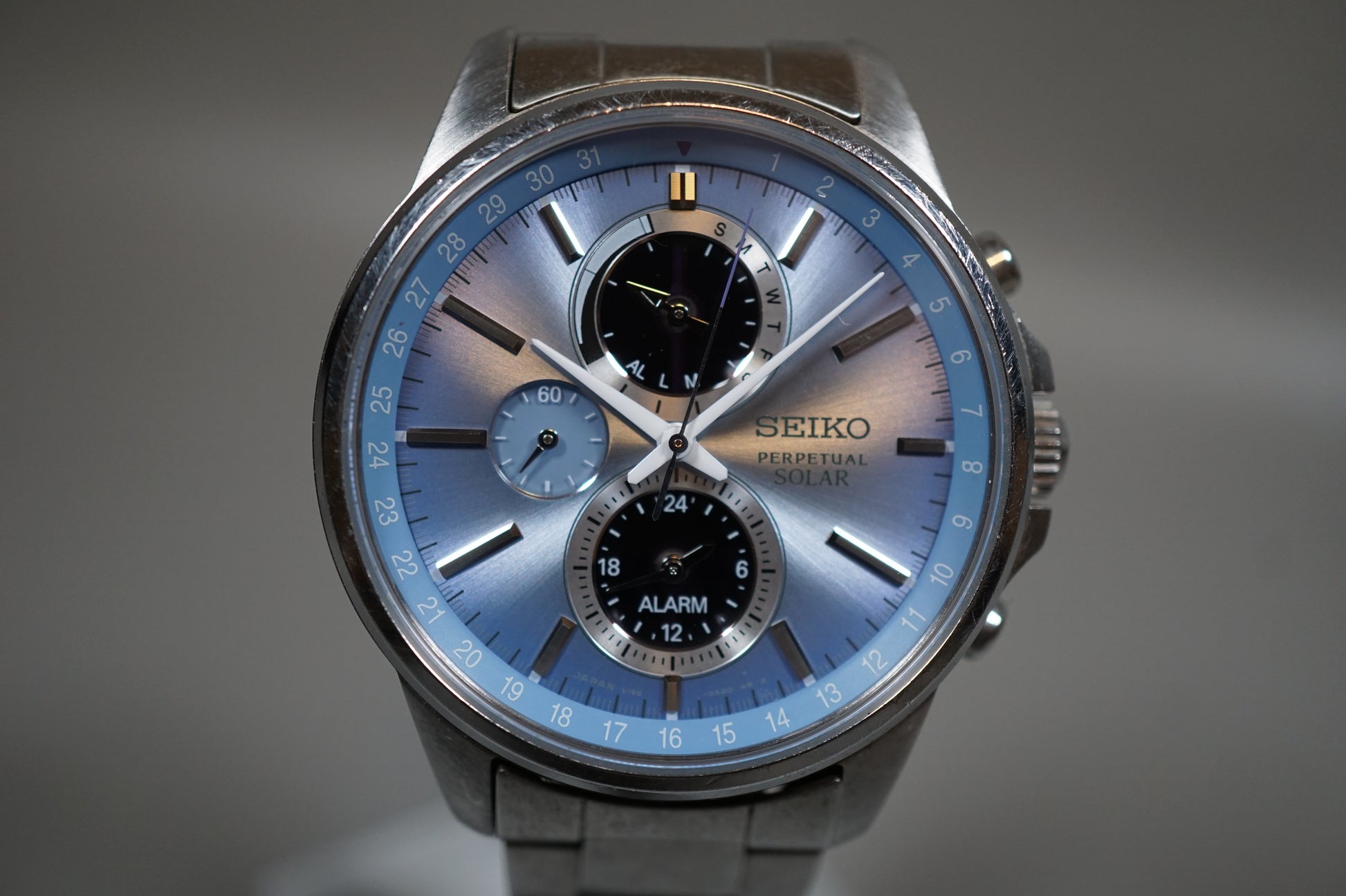 Seiko Spirit SBPJ001 V198 Ice Blue Dial Perpetual Solar Quartz Watch