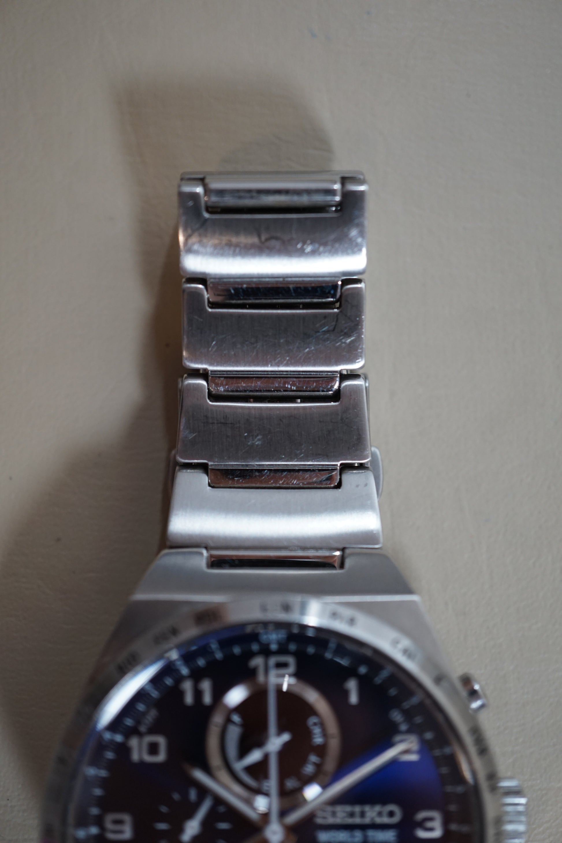 For sale is a Seiko Spirit SBPJ023 V195 Solar Sapphire Blue Dial.