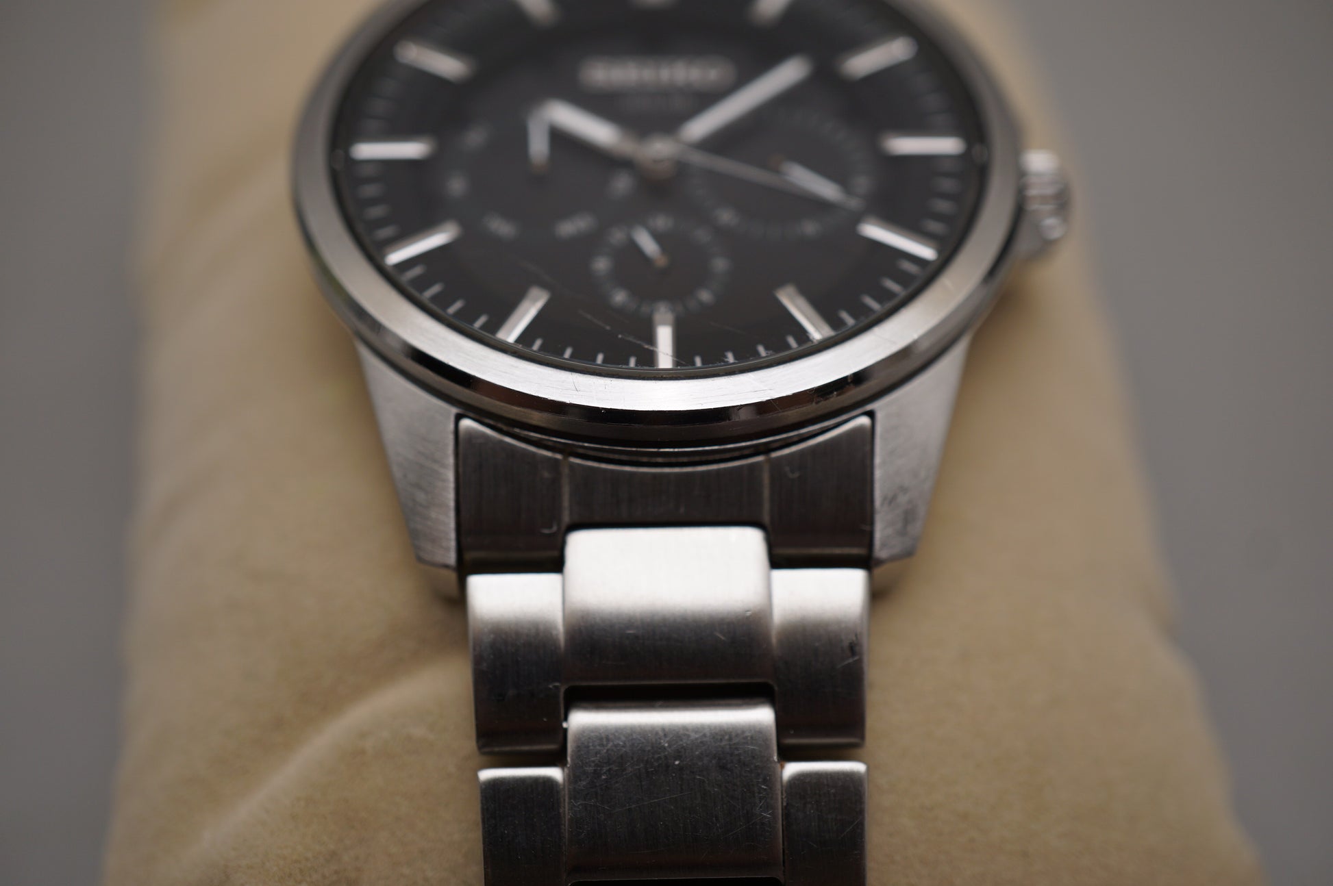 For sale is a Seiko Spirit SBPV011 Black Dial Day Date Solar Quartz Watch