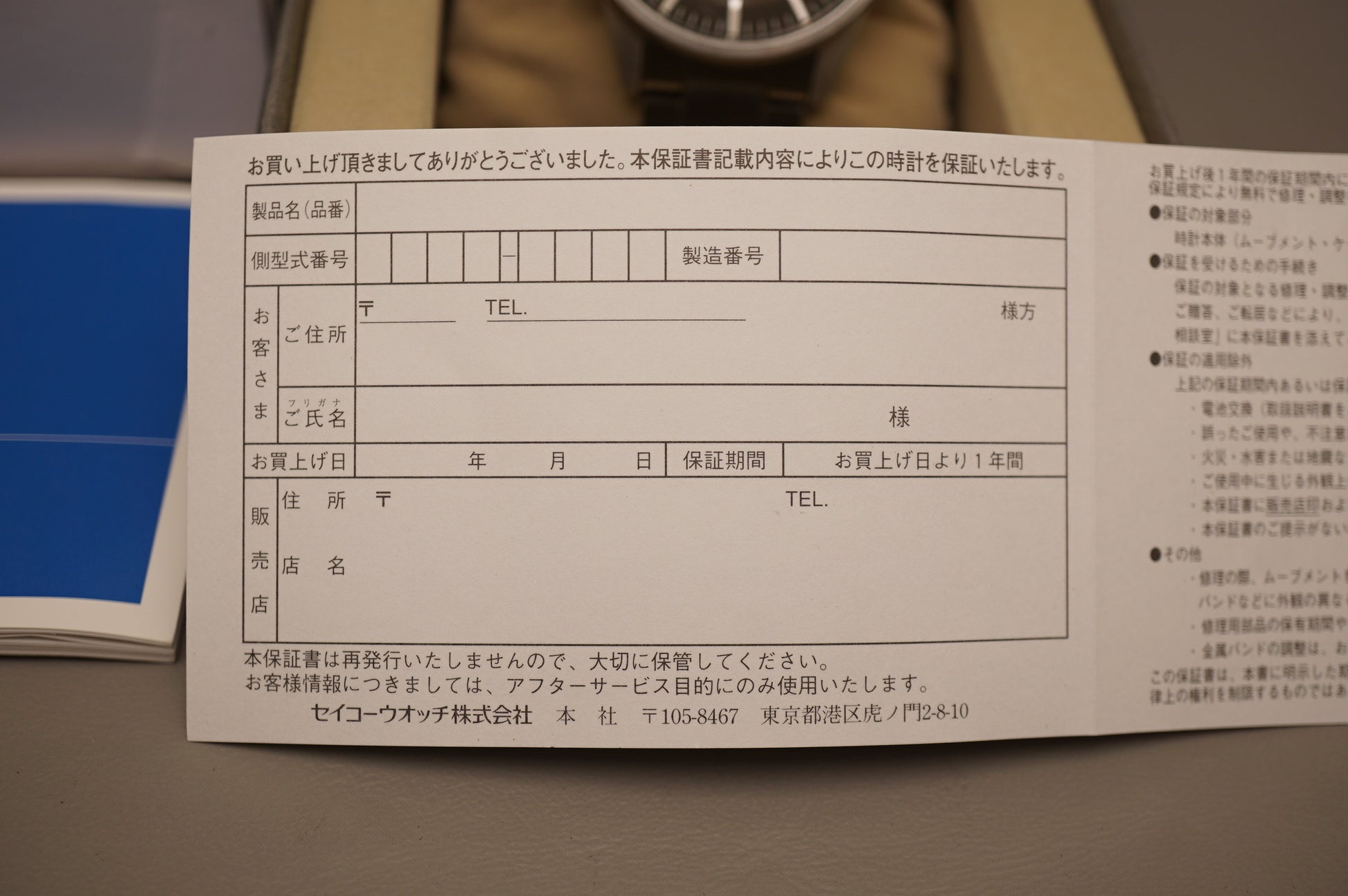 Warranty card: Blank