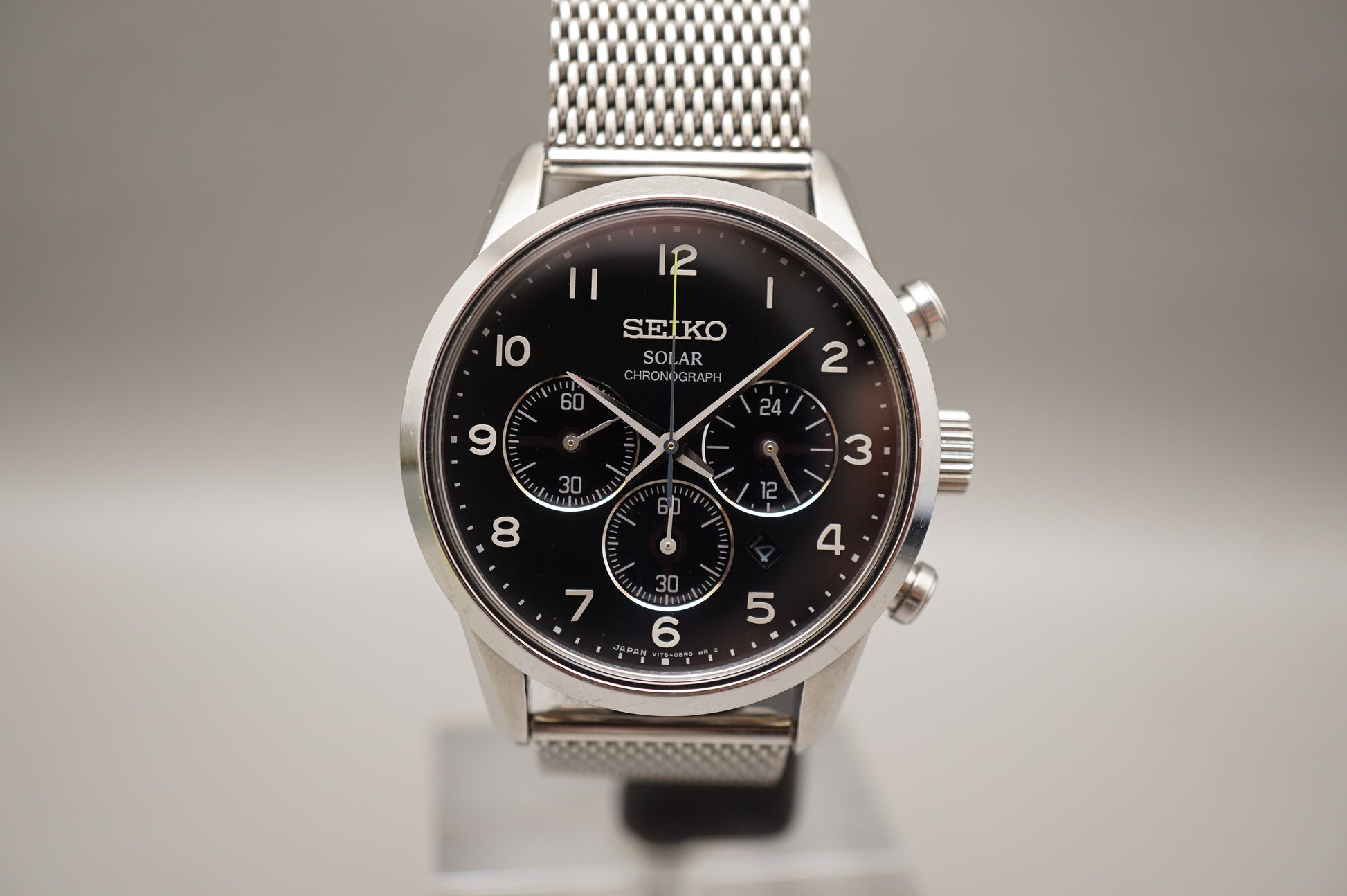 For sale is a Seiko Spirit SBPY089 Black Dial Chronograph Solar Quartz Watch