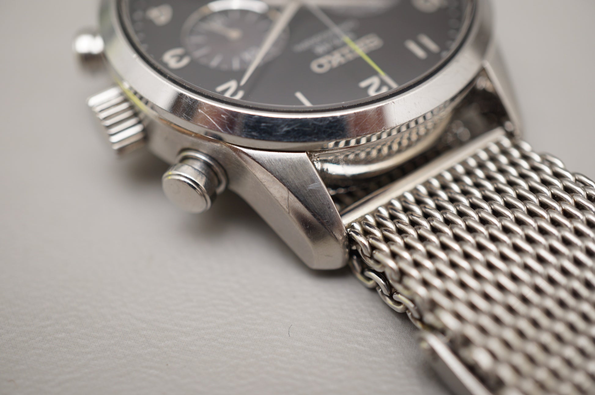 Solar charging capacitor replaced December 2024, chronograph functions correctly, no wear on crystal.