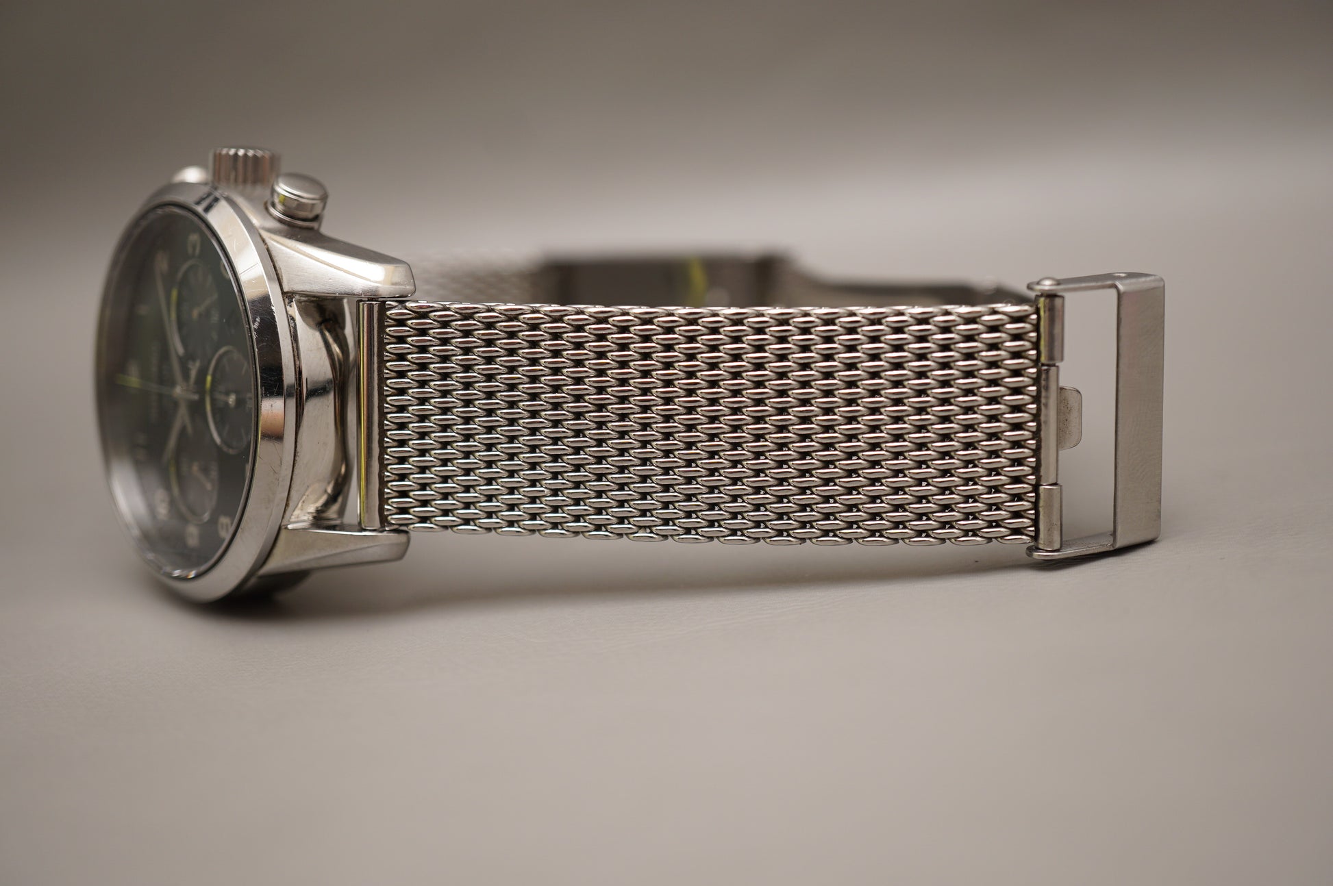 Strap: Aftermarket milanese bracelet fits approximately 19cm wrists