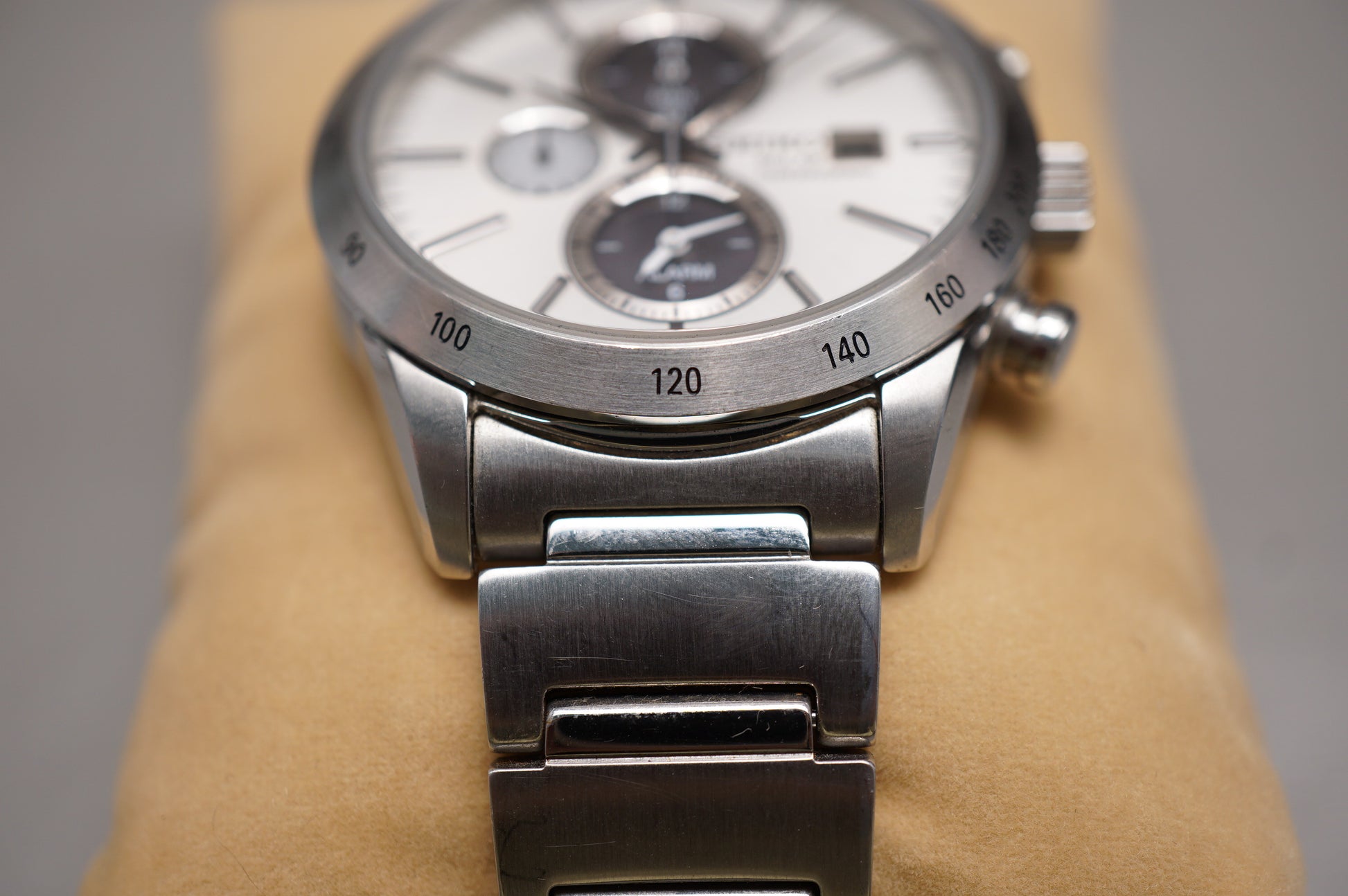 Seiko Spirit SBPY113 V172 White Panda Dial Chronograph Solar Quartz Watch