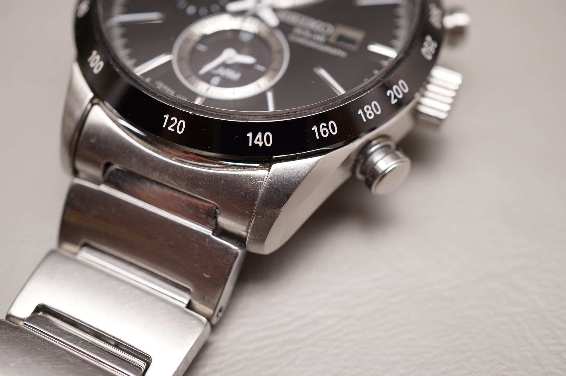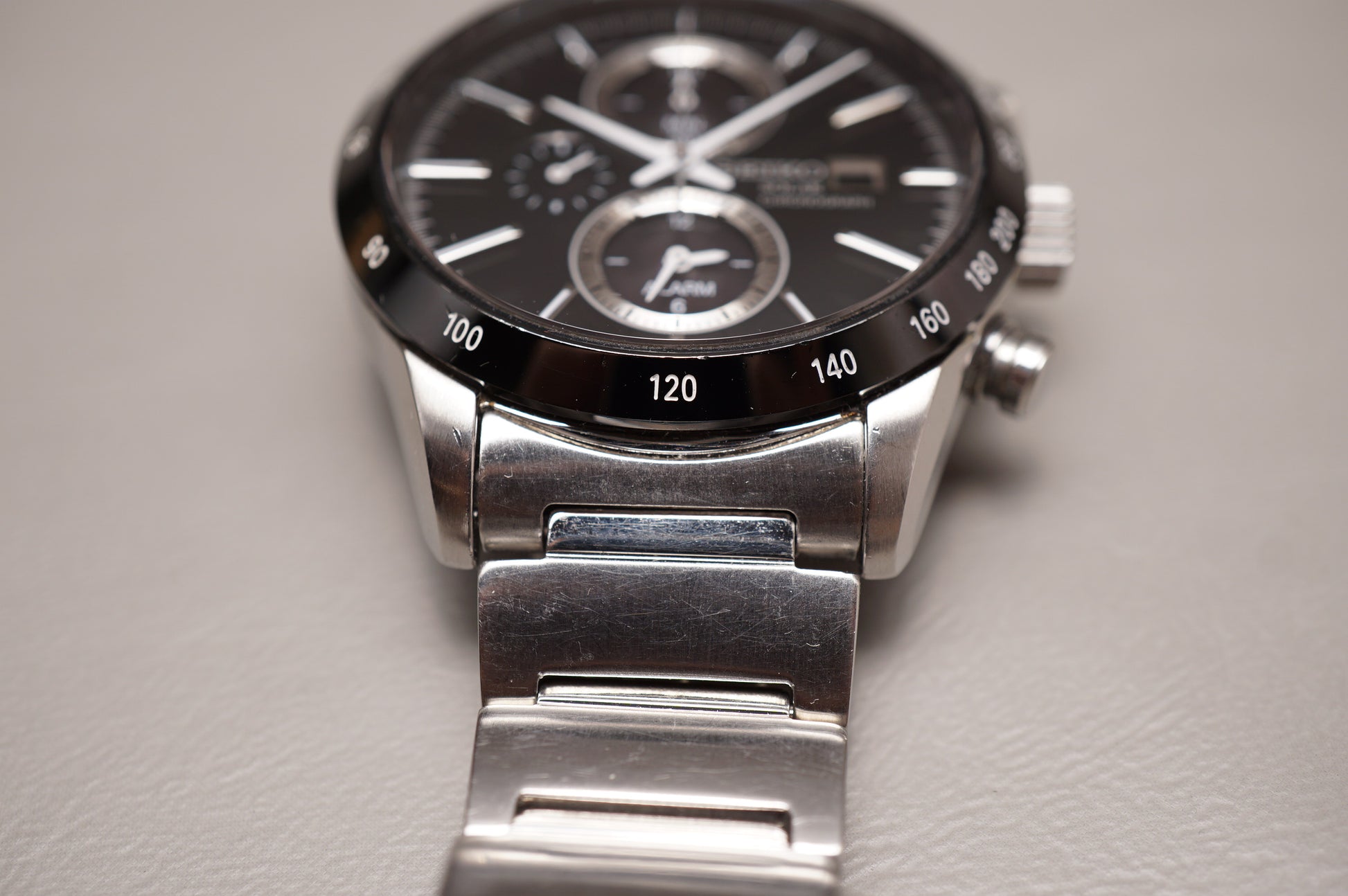 For sale is a Seiko Spirit SBPY119 Black Dial Chronograph Solar Quartz Watch