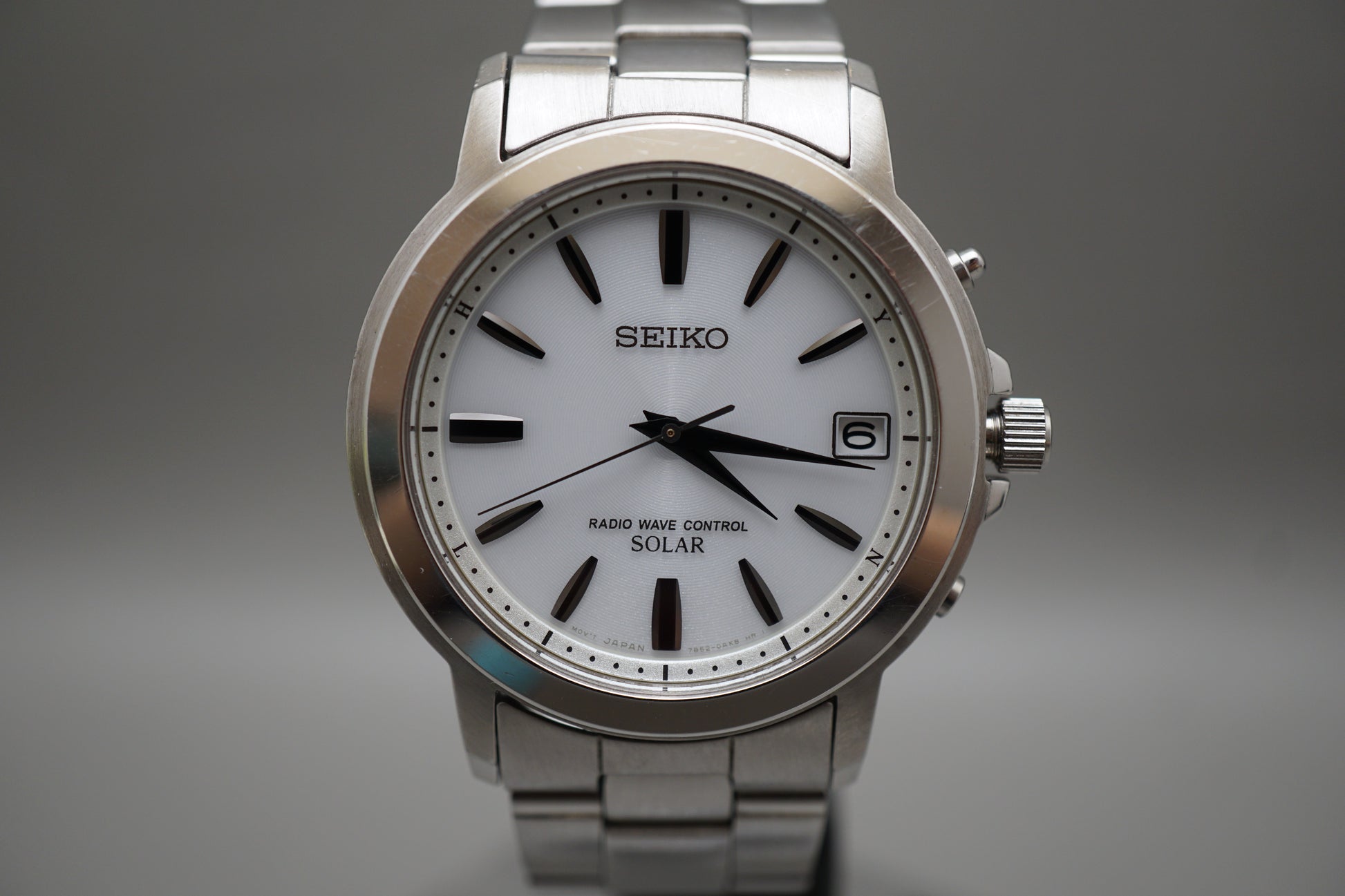 For sale is a Seiko Spirit SBTM167 7B52 White Dial JDM Radio Wave Solar Quartz Watch
