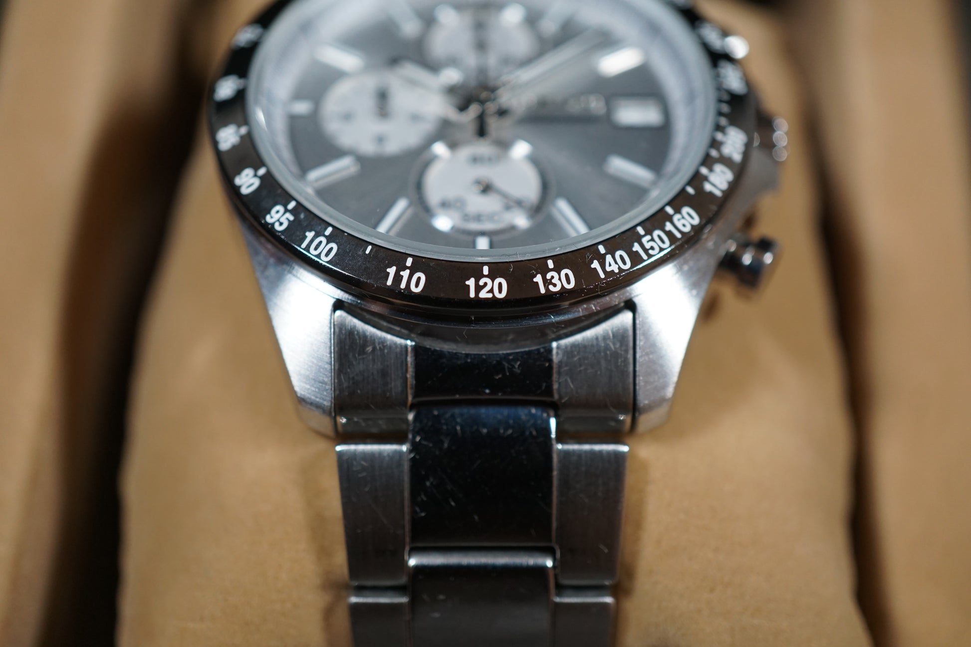 For sale is a Seiko Spirit SBTR007 Silver Dial Chronograph Quartz Watch
