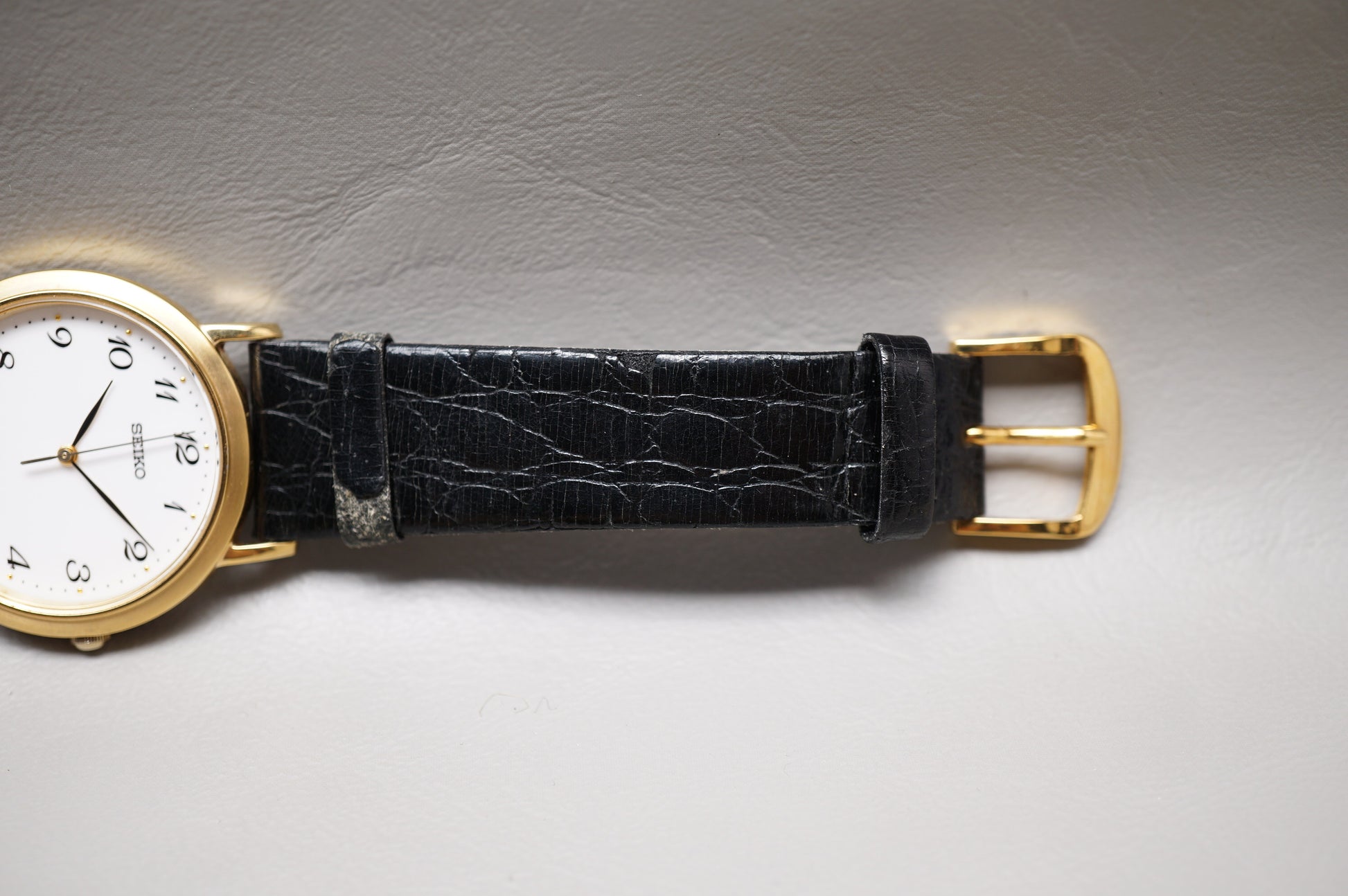 For sale is a Seiko Spirit SCDP030 Gold Tone White Dial Quartz Watch