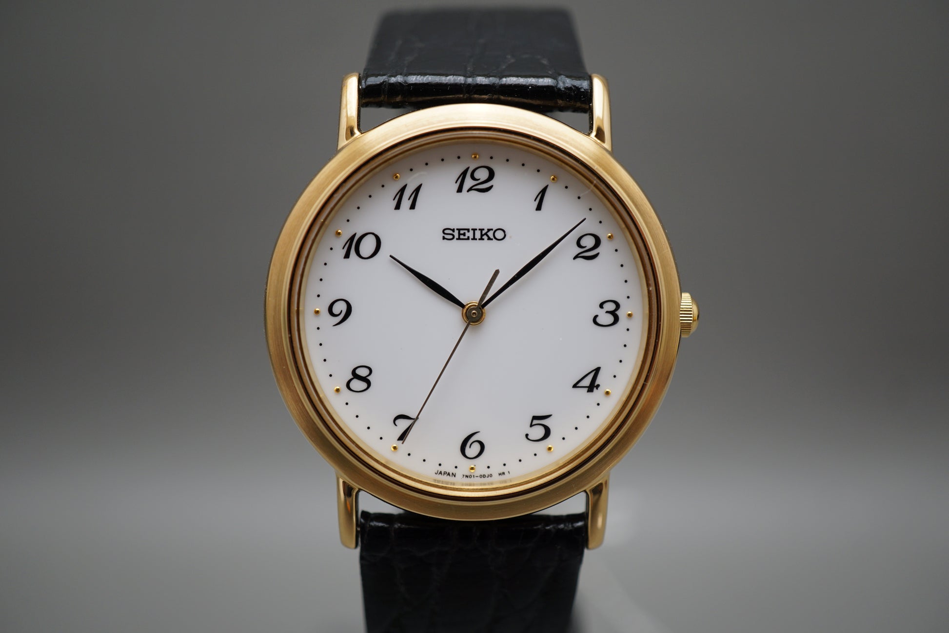 Seiko Spirit SCDP030 7N01 Gold Tone White Numeral Dial Quartz Watch