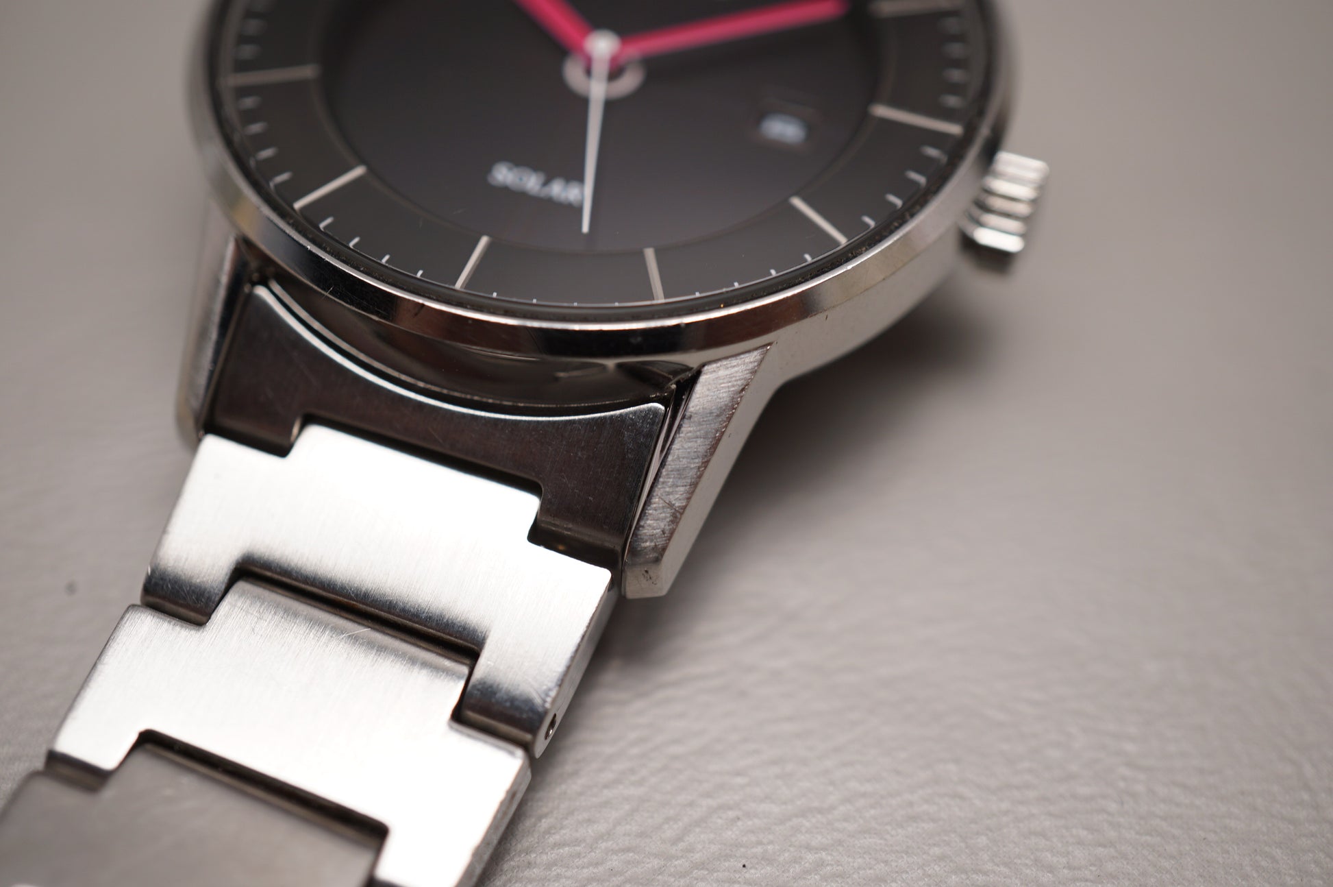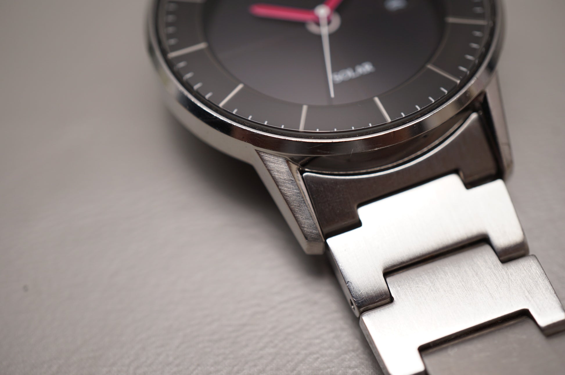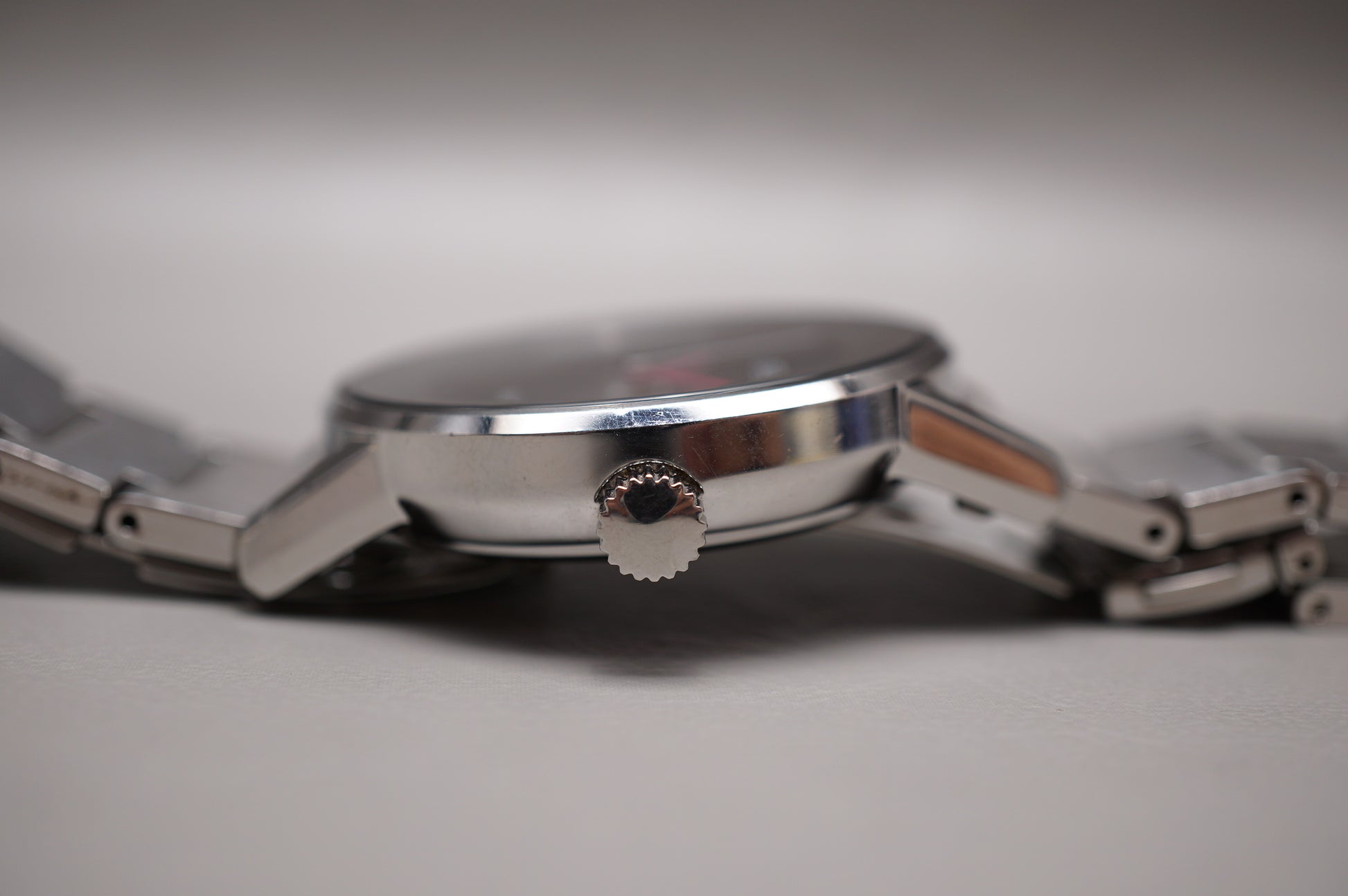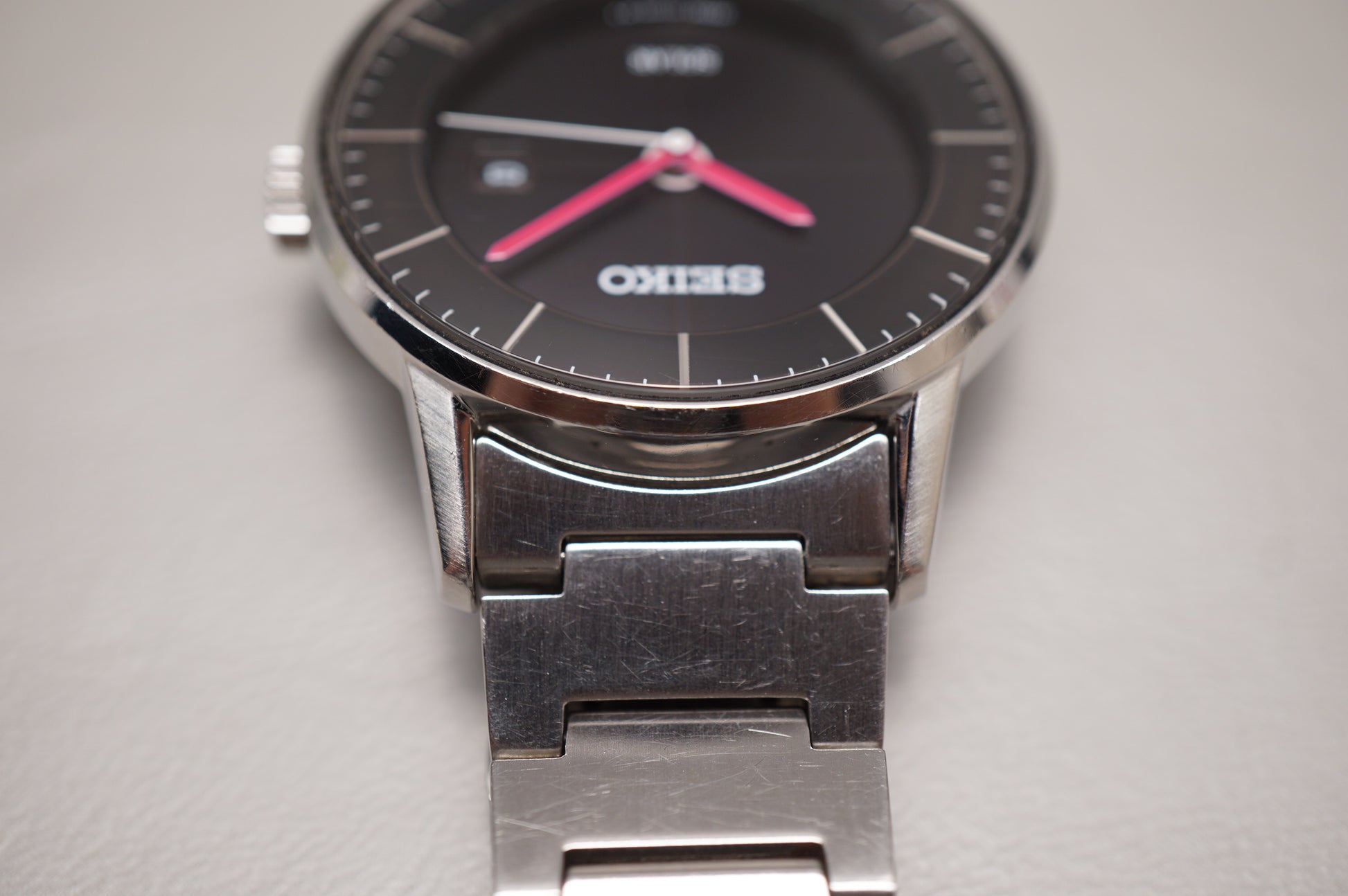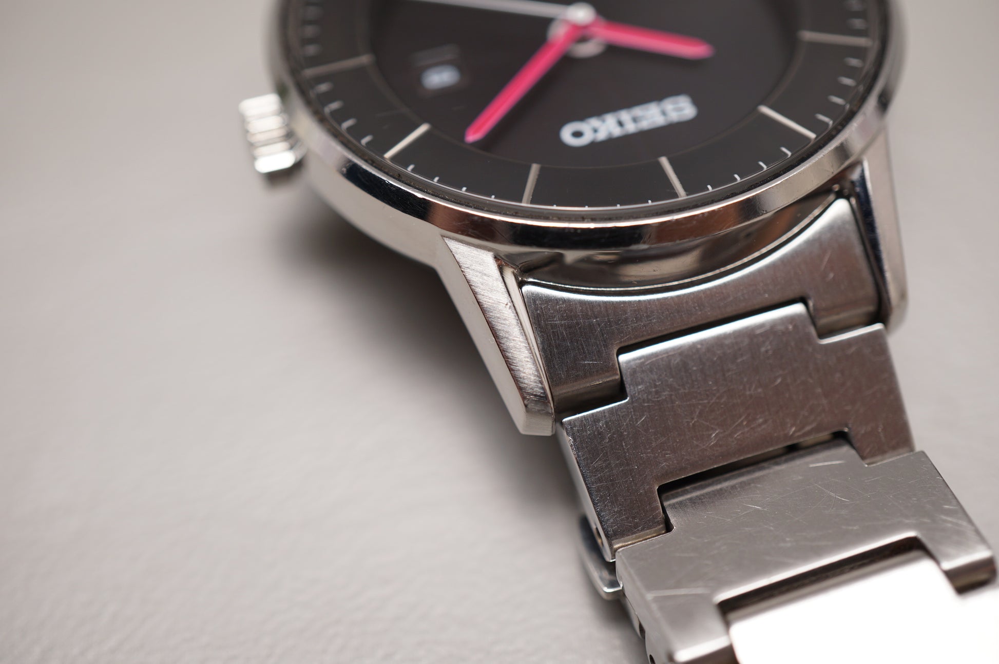 For sale is a Seiko Spirit V147-0AK0 Black Dial Pink Hands Sector Dial Solar Quartz Watch