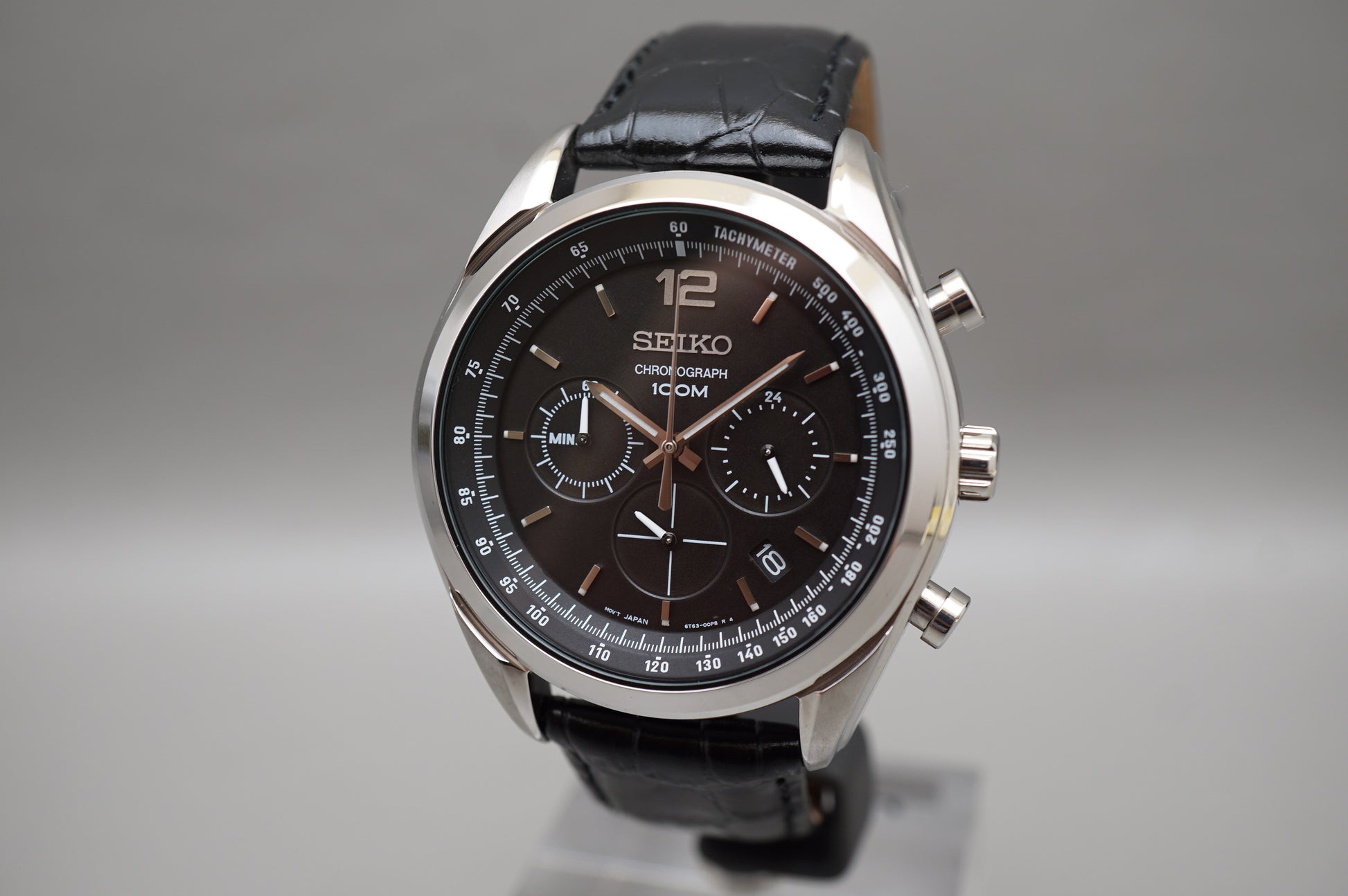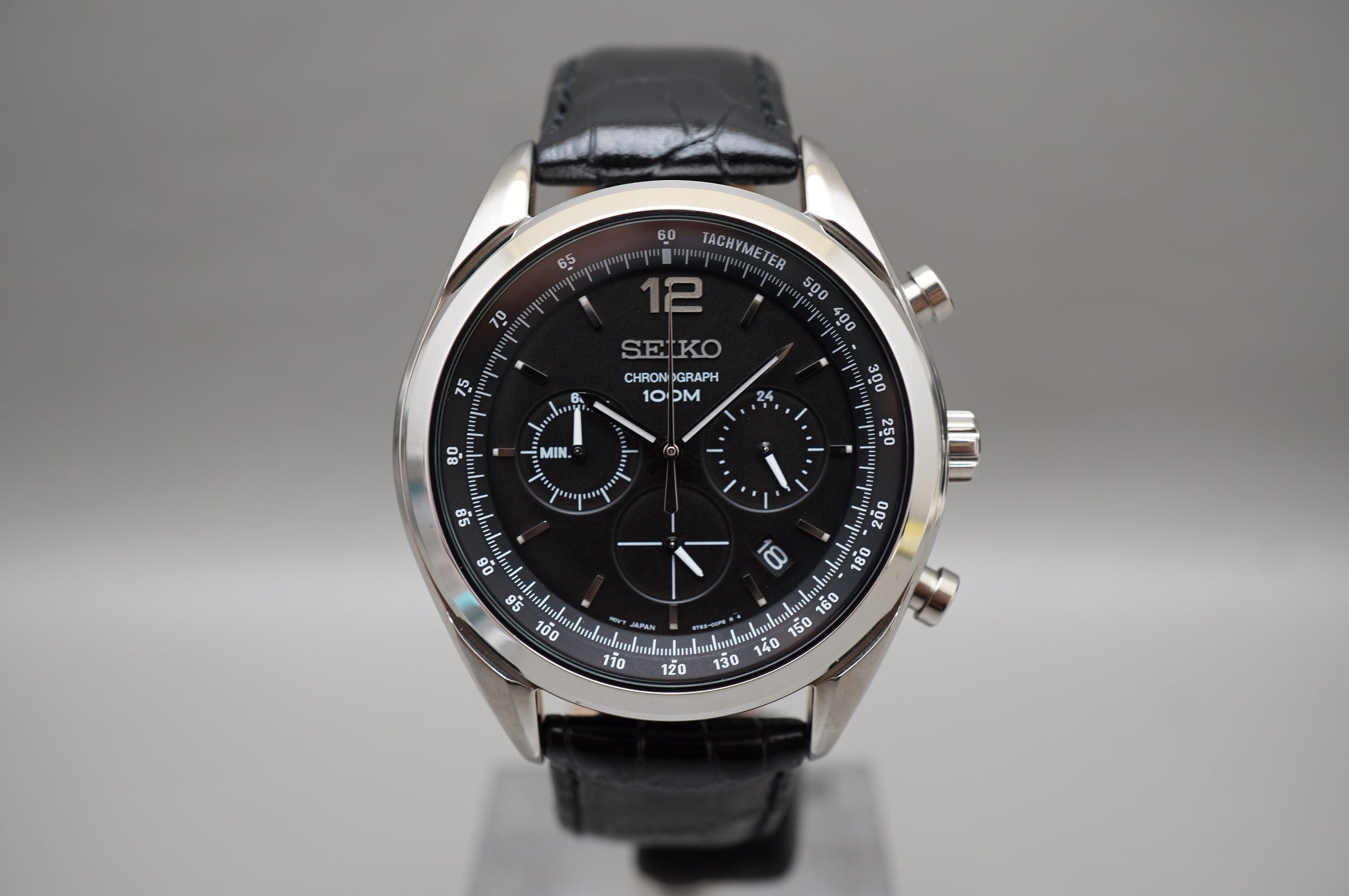 For sale is a Seiko SSB097P1 Black Dial Chronograph Tachymeter Quartz Watch