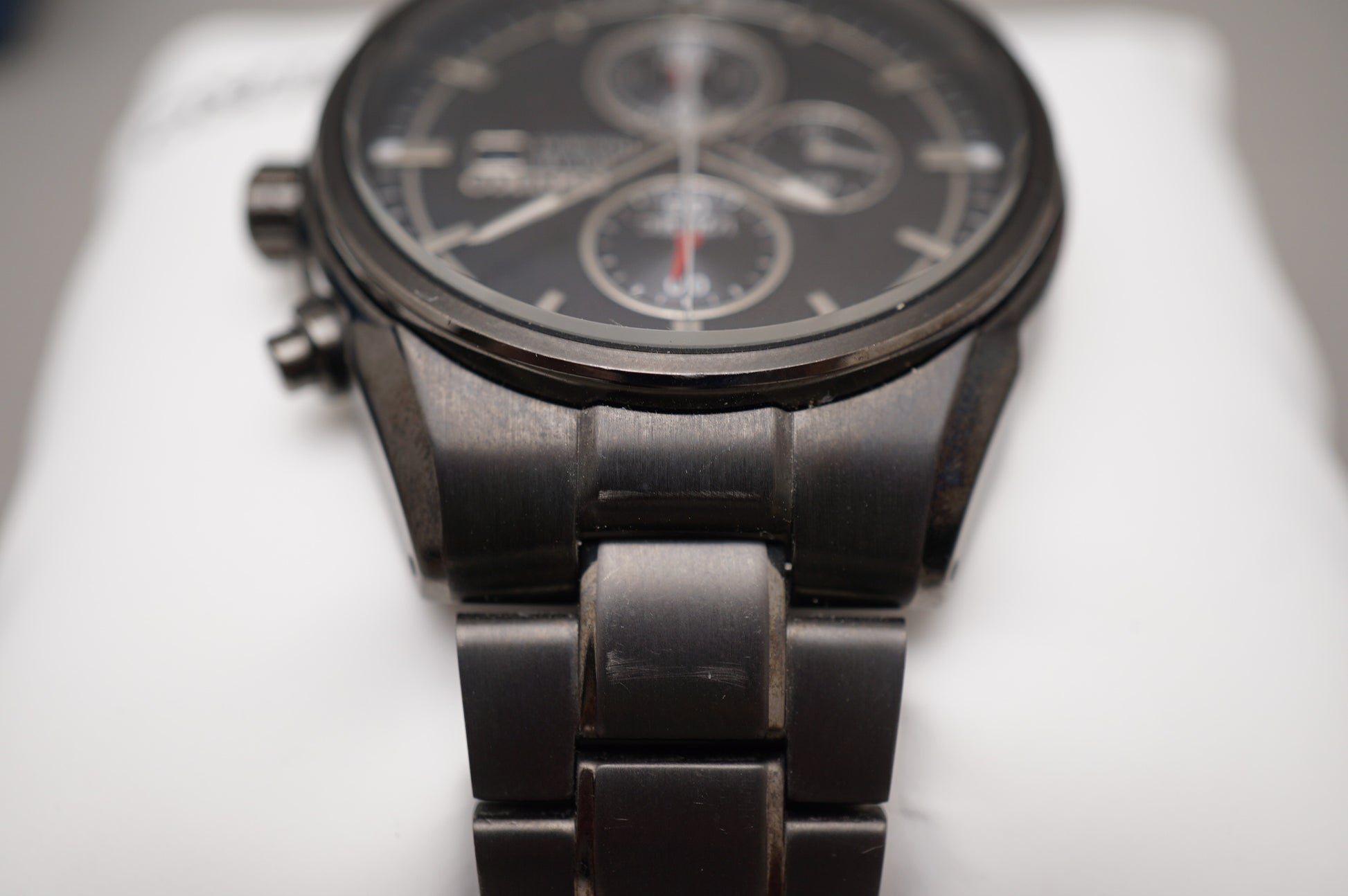 Solar charging capacitor replaced December 2024, chronograph functions correctly, no wear on crystal.