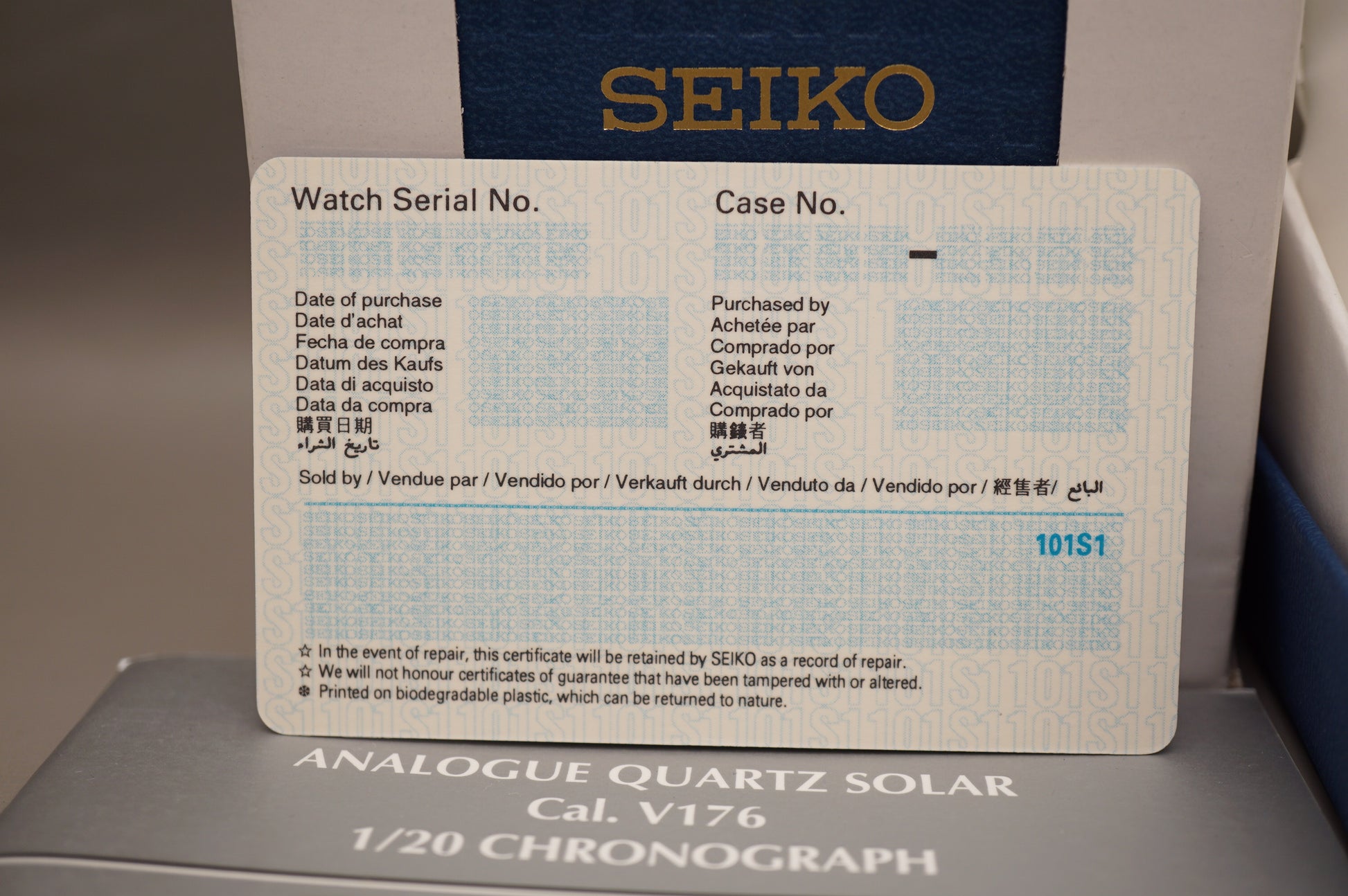 Seiko SSC393 V176 Titanium Black 1/20th Seconds Chronograph Solar Quartz Watch