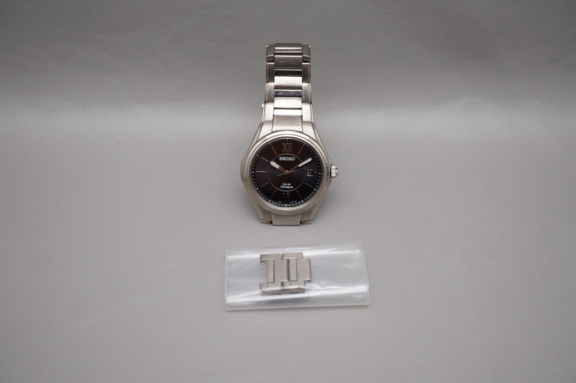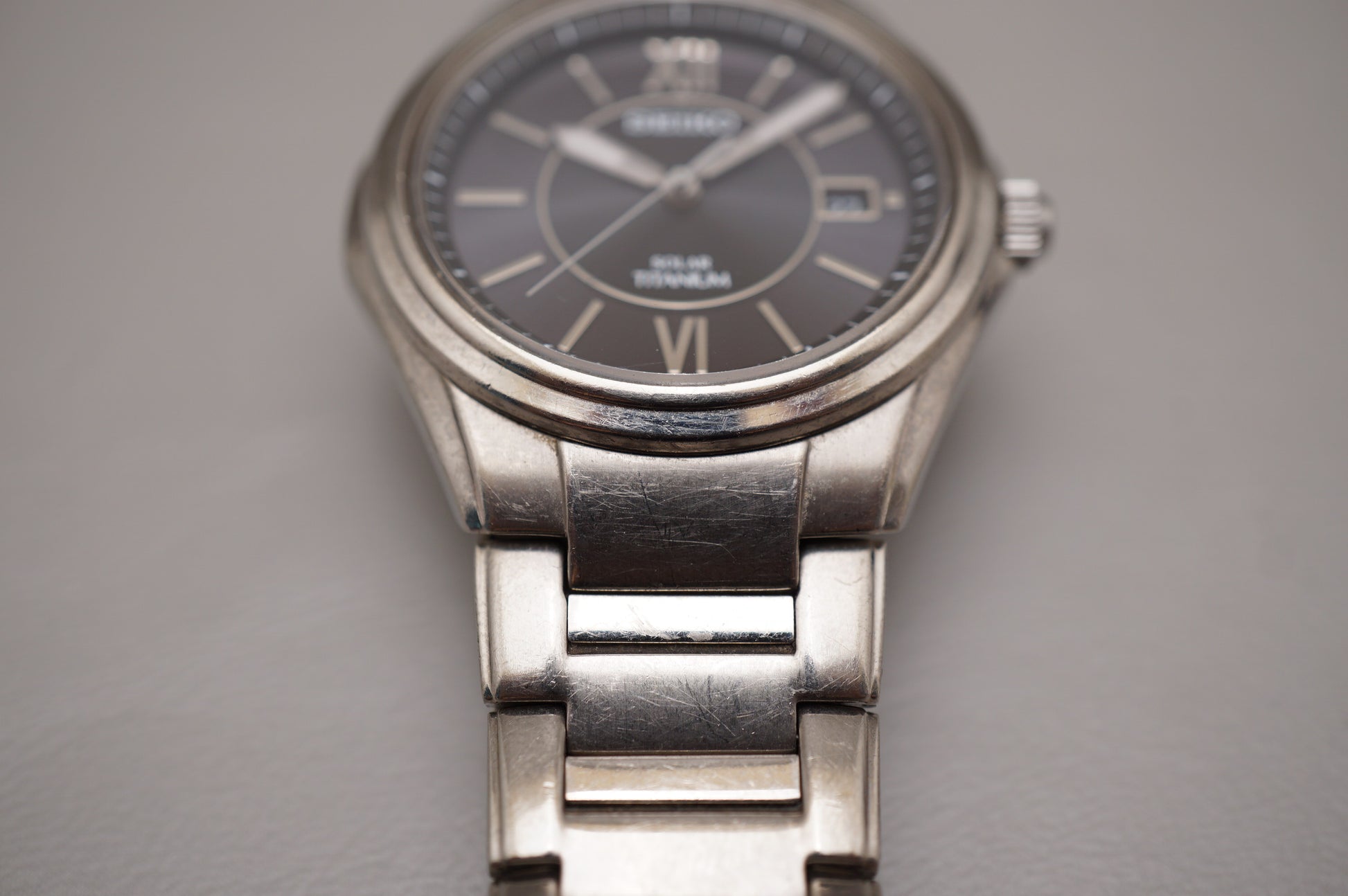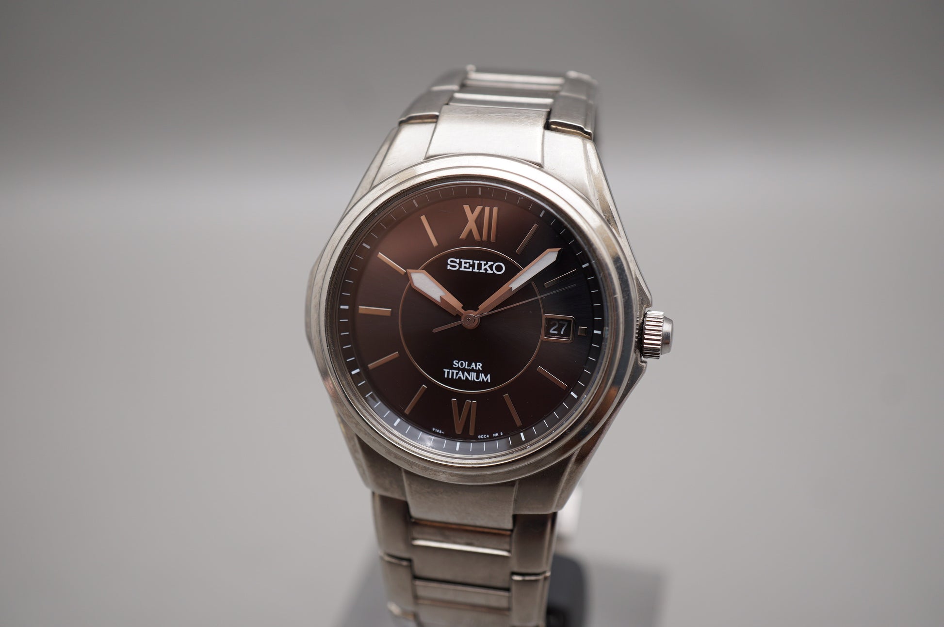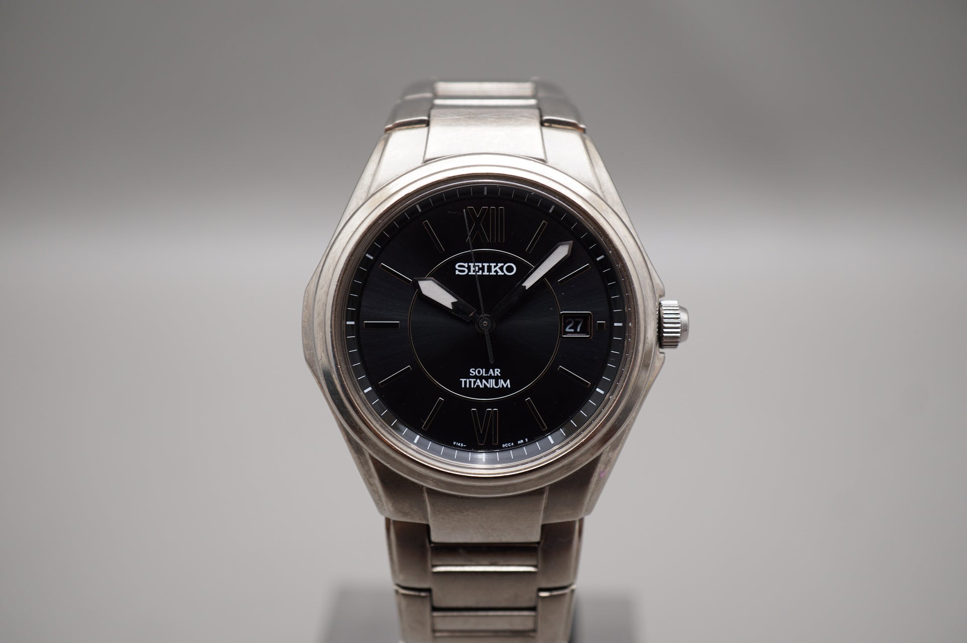 For sale is a Seiko V145-0BA0 Dark Grey Dial Solar Quartz Titanium JDM Watch