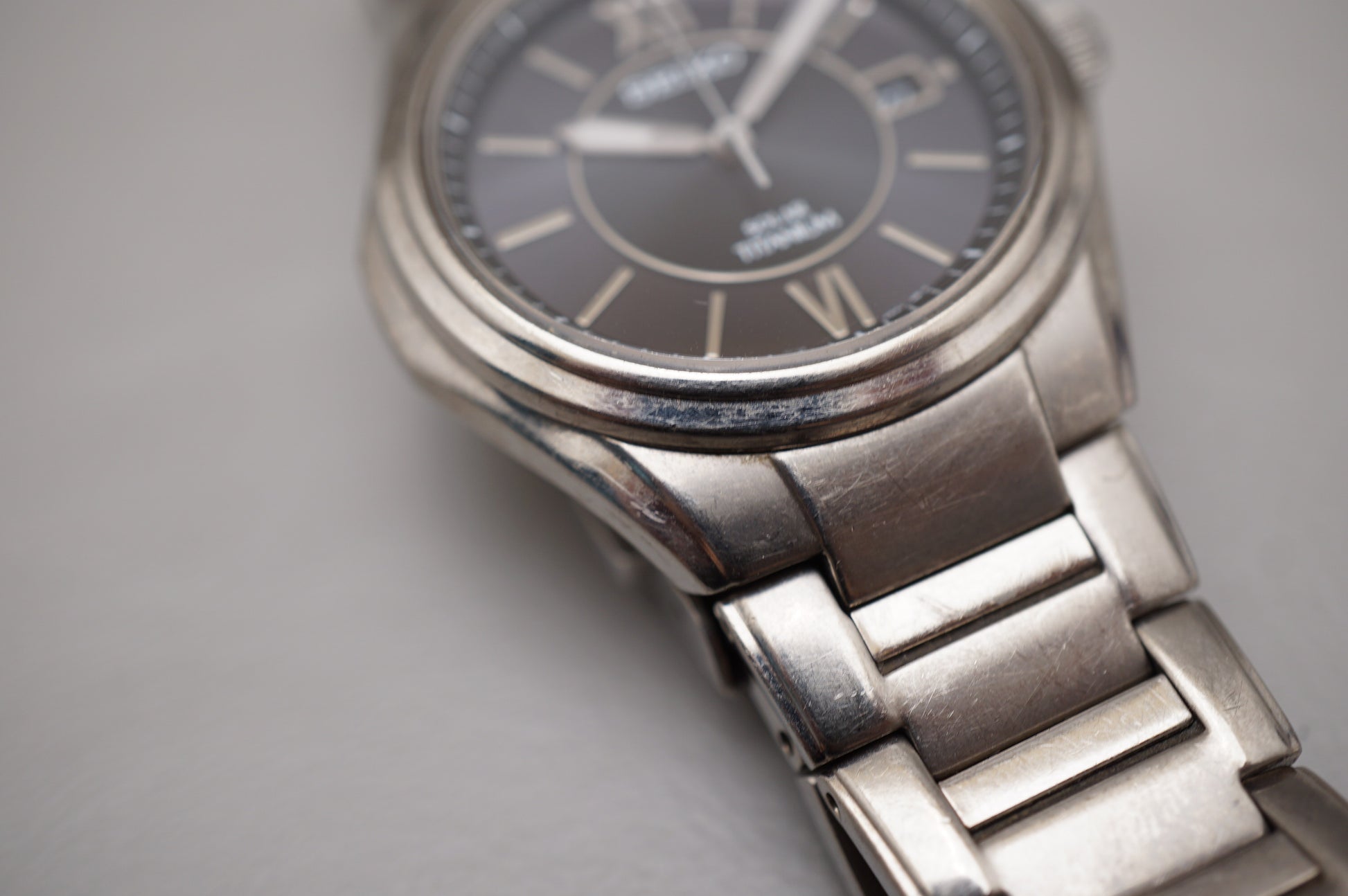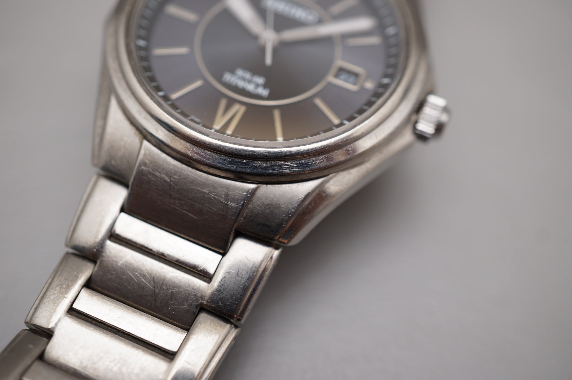 Seiko V145-0BA0 Dark Grey Dial Solar Quartz Titanium Case Bracelet JDM Watch
